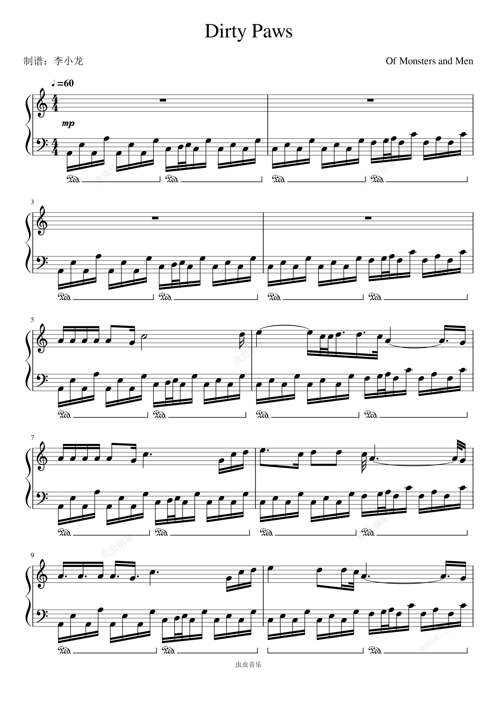 钢琴谱:《Dirty Paws》C调-Of Monsters and Men