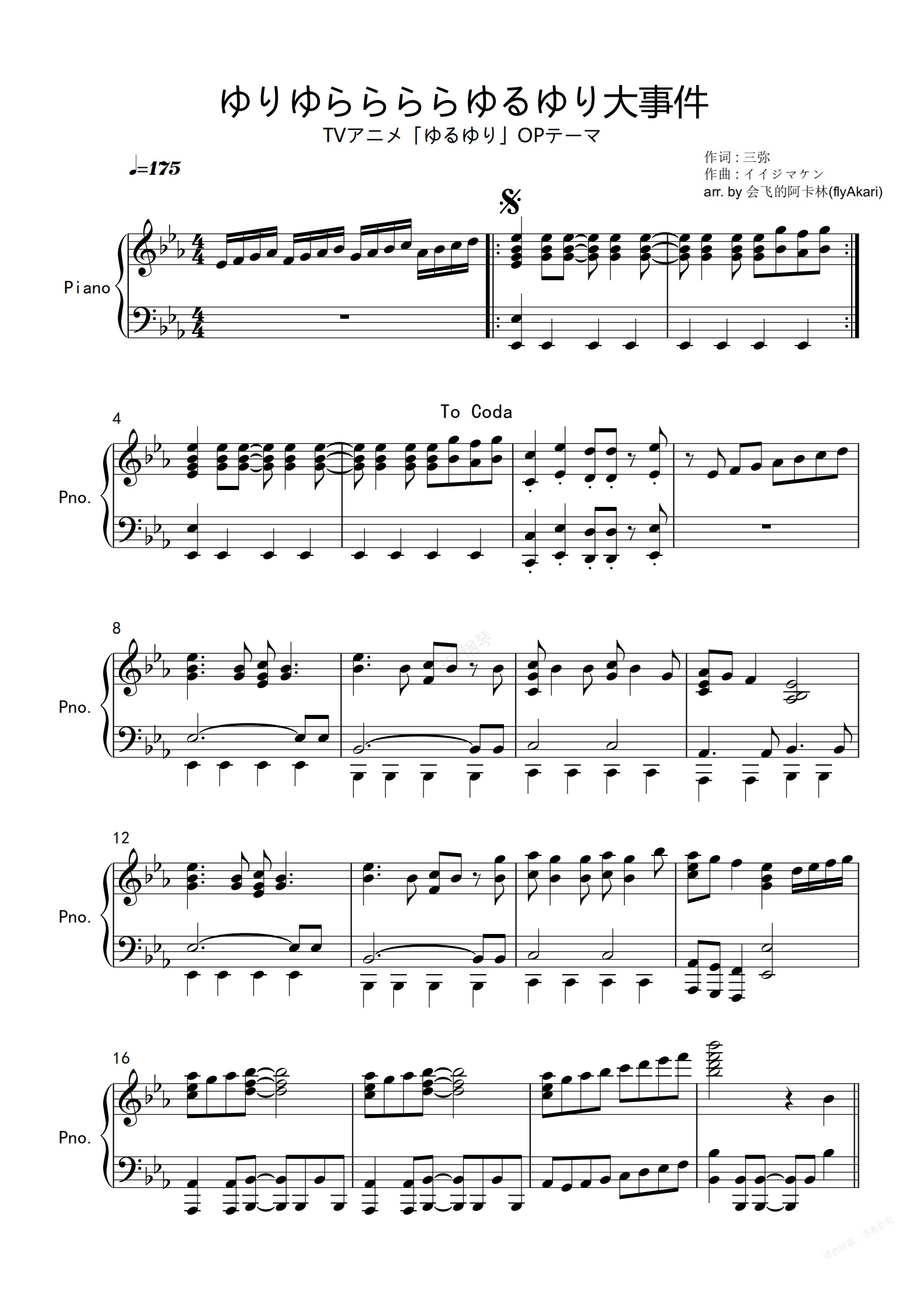 钢琴谱:ゆりゆららららゆるゆり大事件《摇曳百合》OP