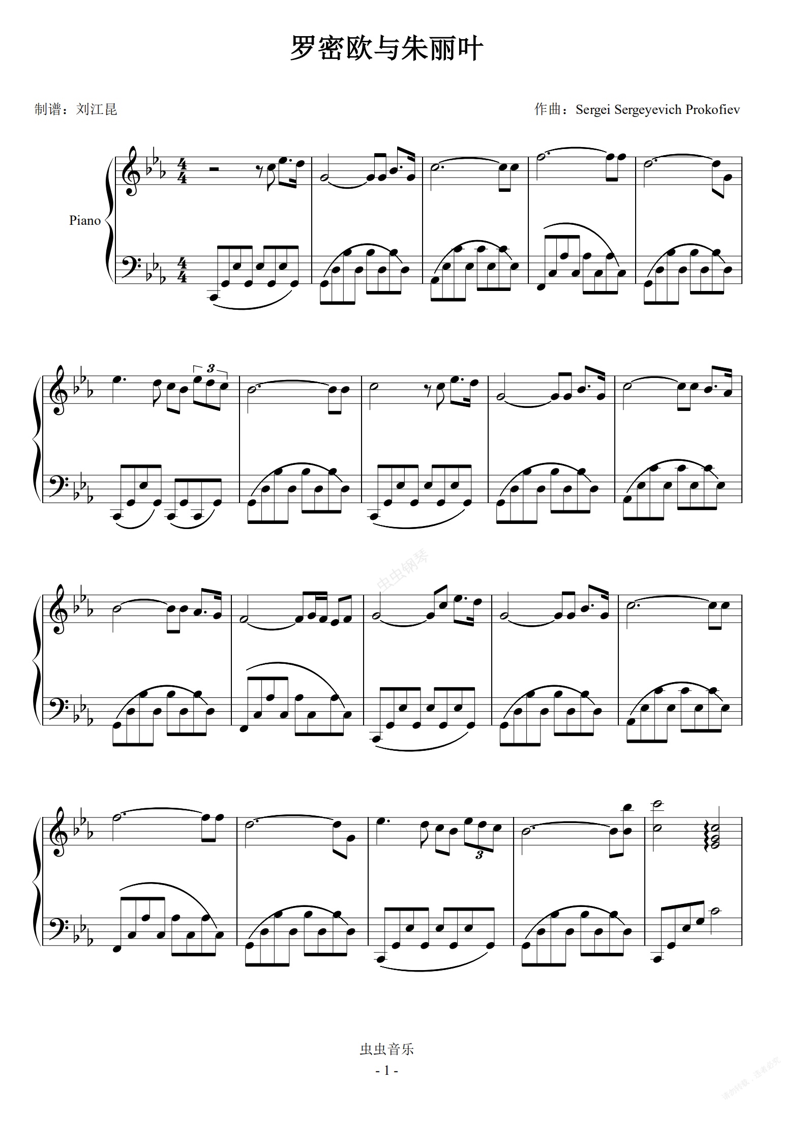 钢琴谱:罗密欧与朱丽叶(接近原版)