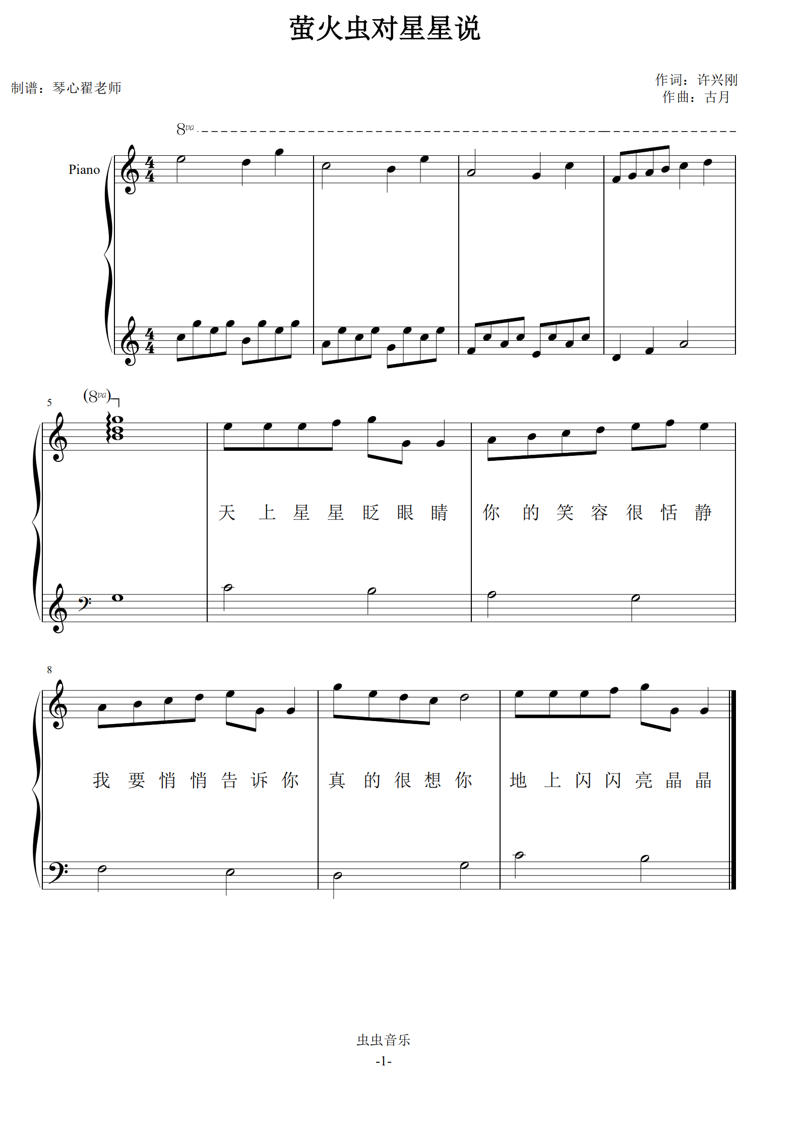 钢琴谱:萤火虫对星星说 简易版钢琴谱 带歌词