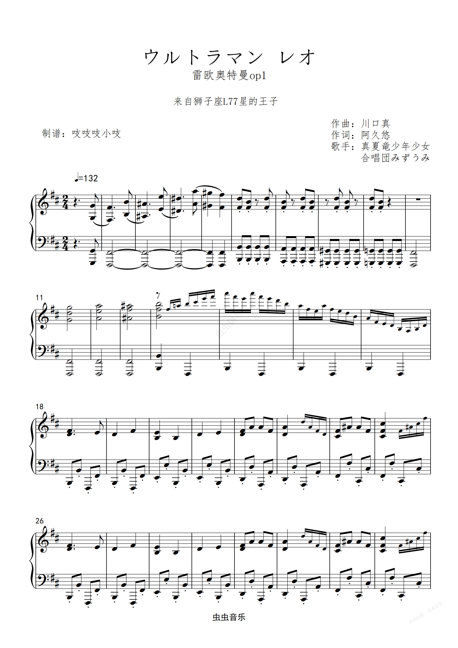 钢琴谱:雷欧奥特曼op1 ウルトラマン レオ