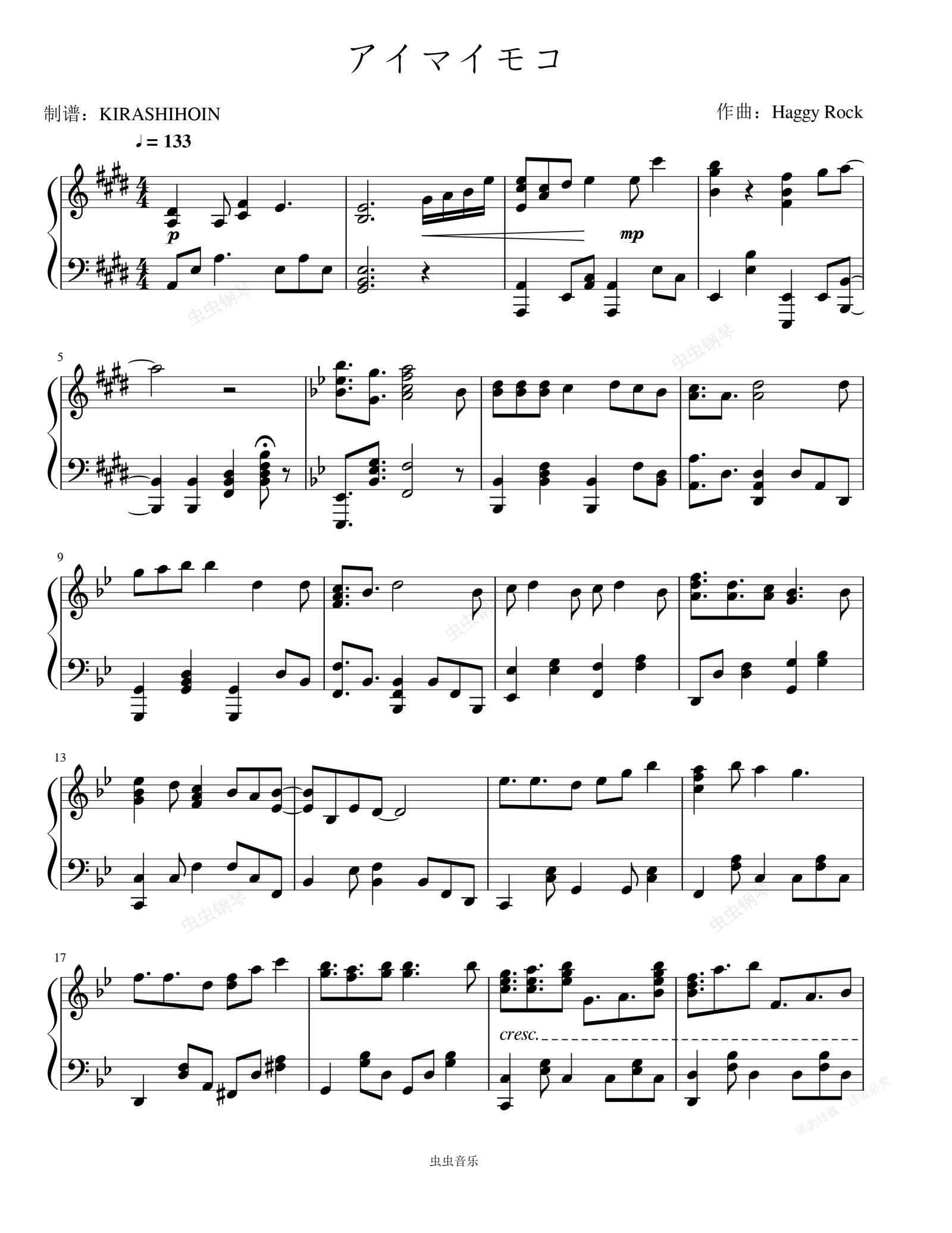 钢琴谱:アイマイモコ(《徒然喜欢你》OP)