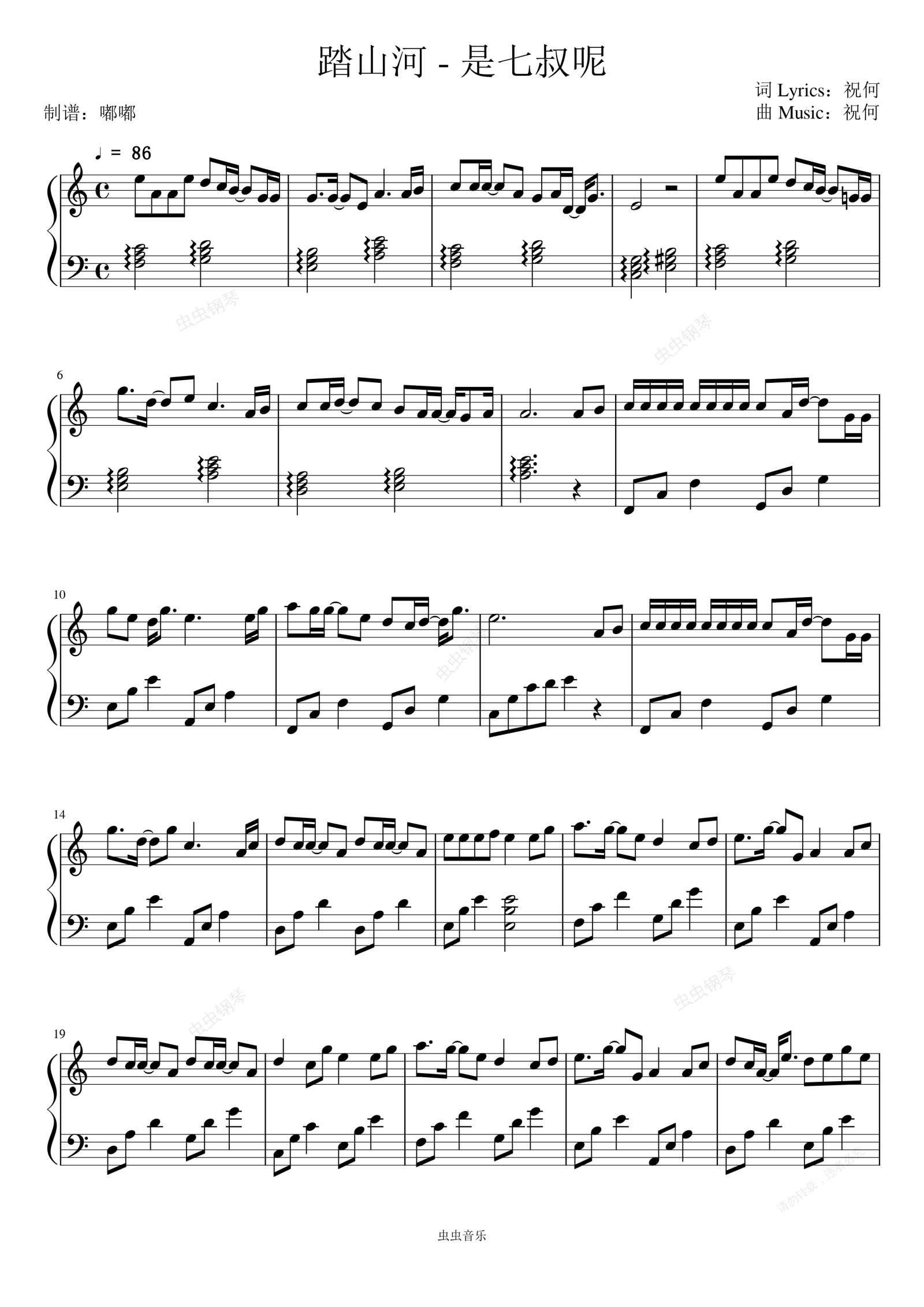 钢琴谱:《踏山河》C调 - 是七叔呢