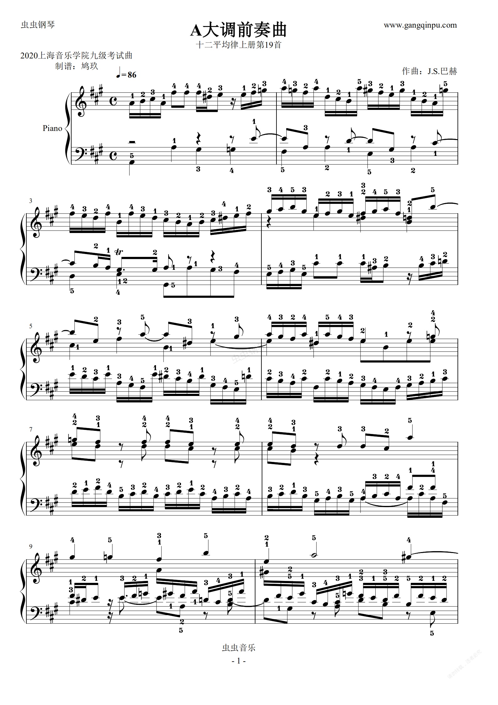 钢琴谱:A大调前奏曲(十二平均律第19首)
