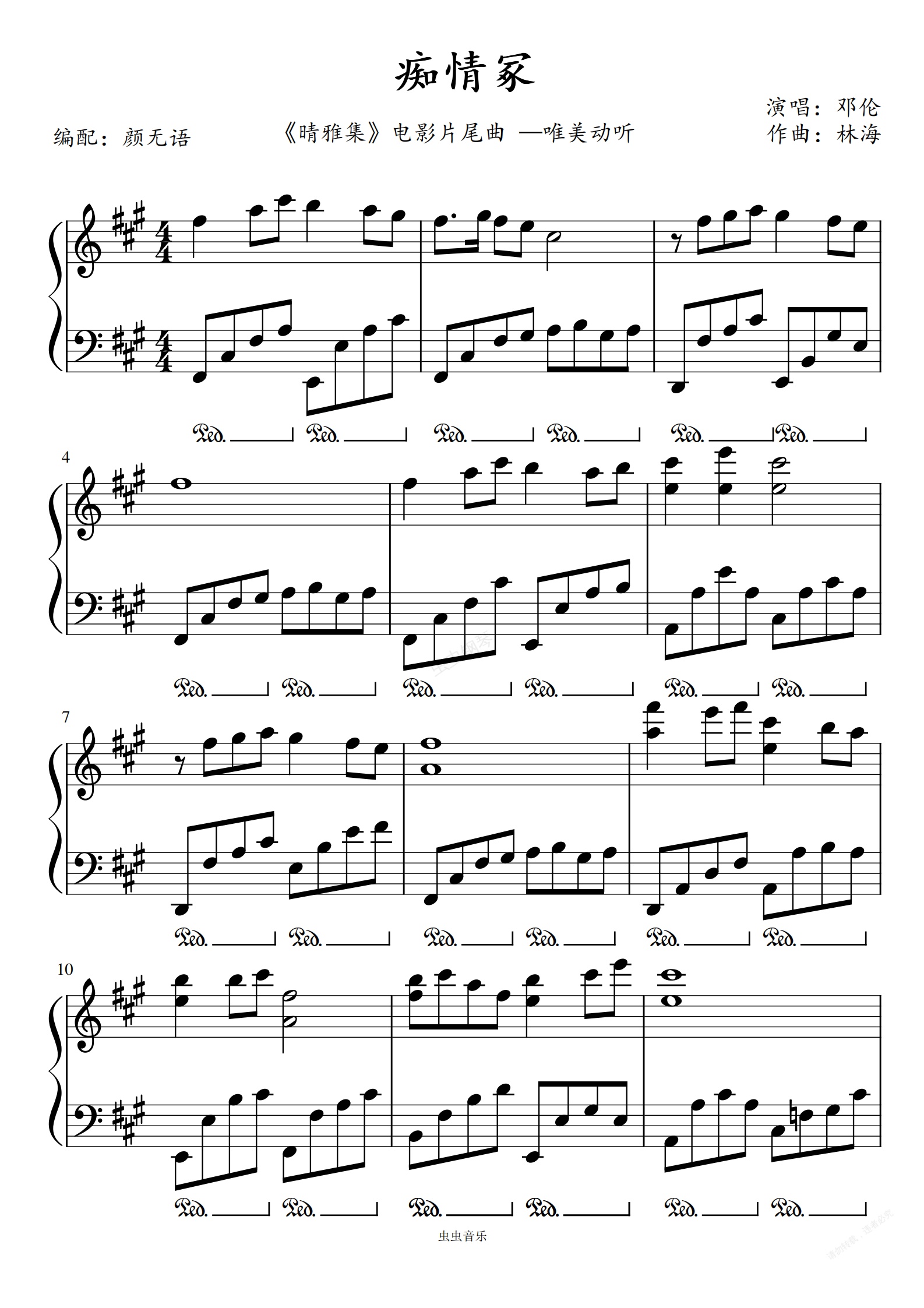 钢琴谱:痴情冢  邓伦 A调  唯美动听不难