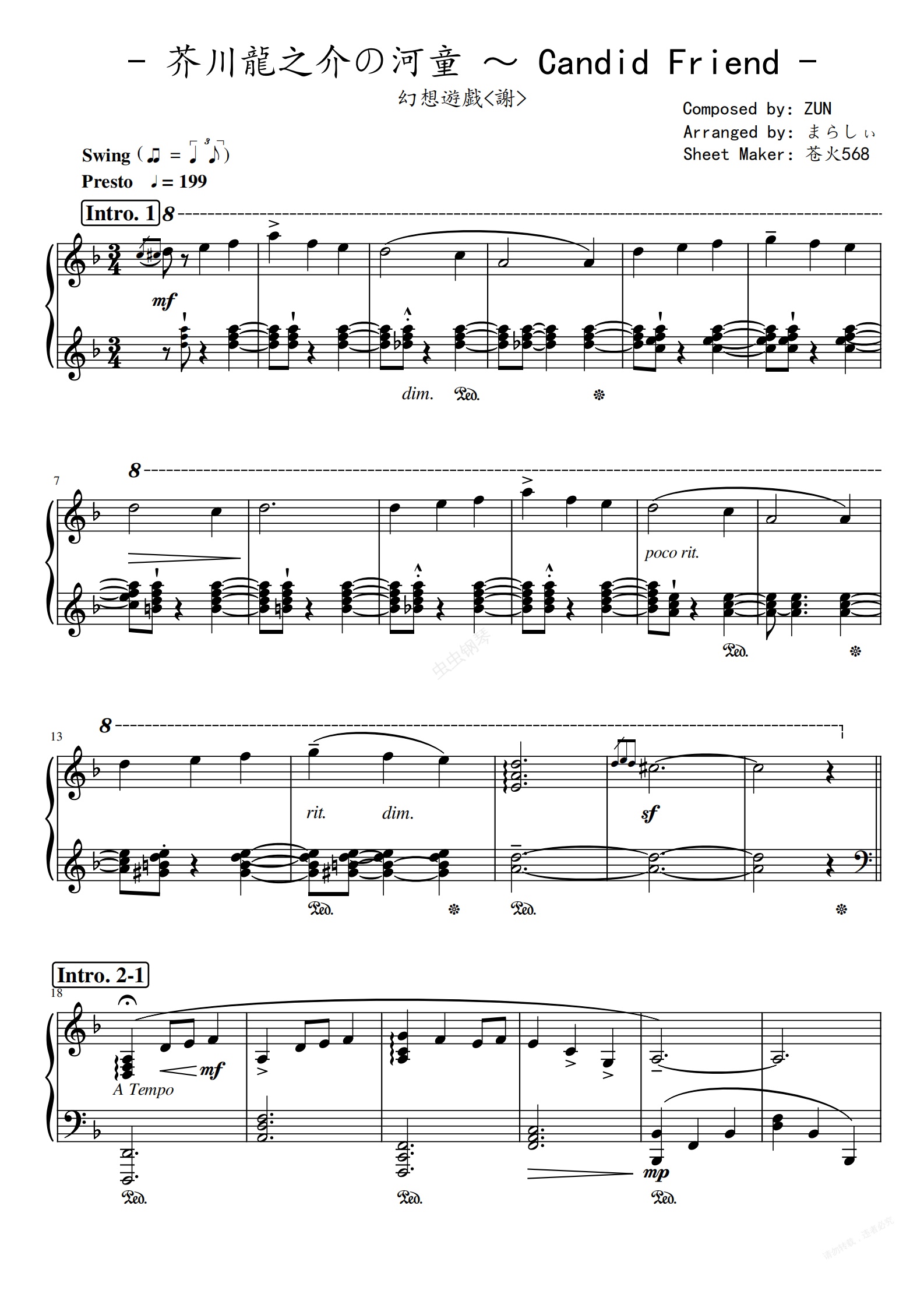白嫖蓬莱人形的VIP加了一下水印 如果读谱有困难的话还请告知我..