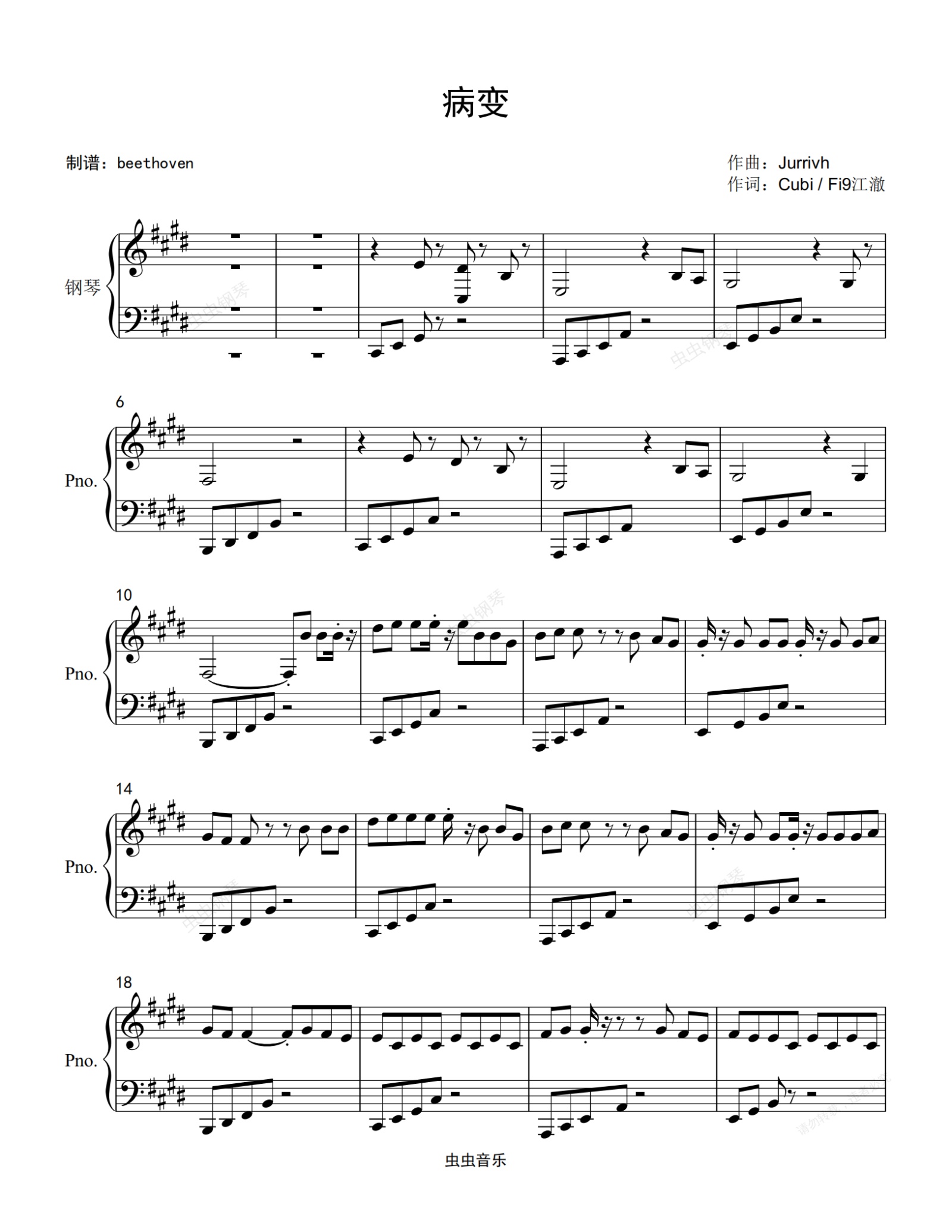 钢琴谱:BINGBIAN病变 (完美独奏) 鞠文娴