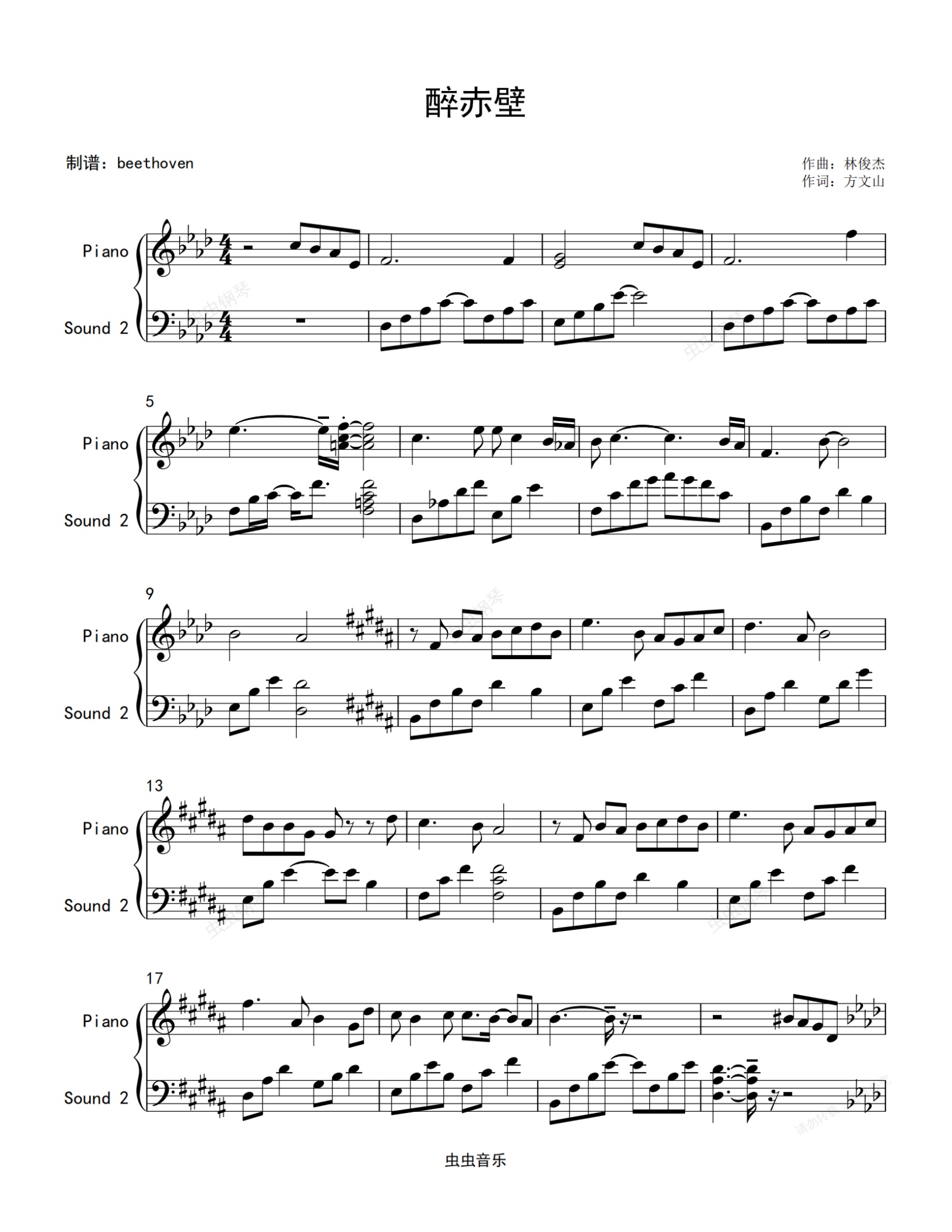 钢琴谱:醉赤壁(原版独奏) 林俊杰