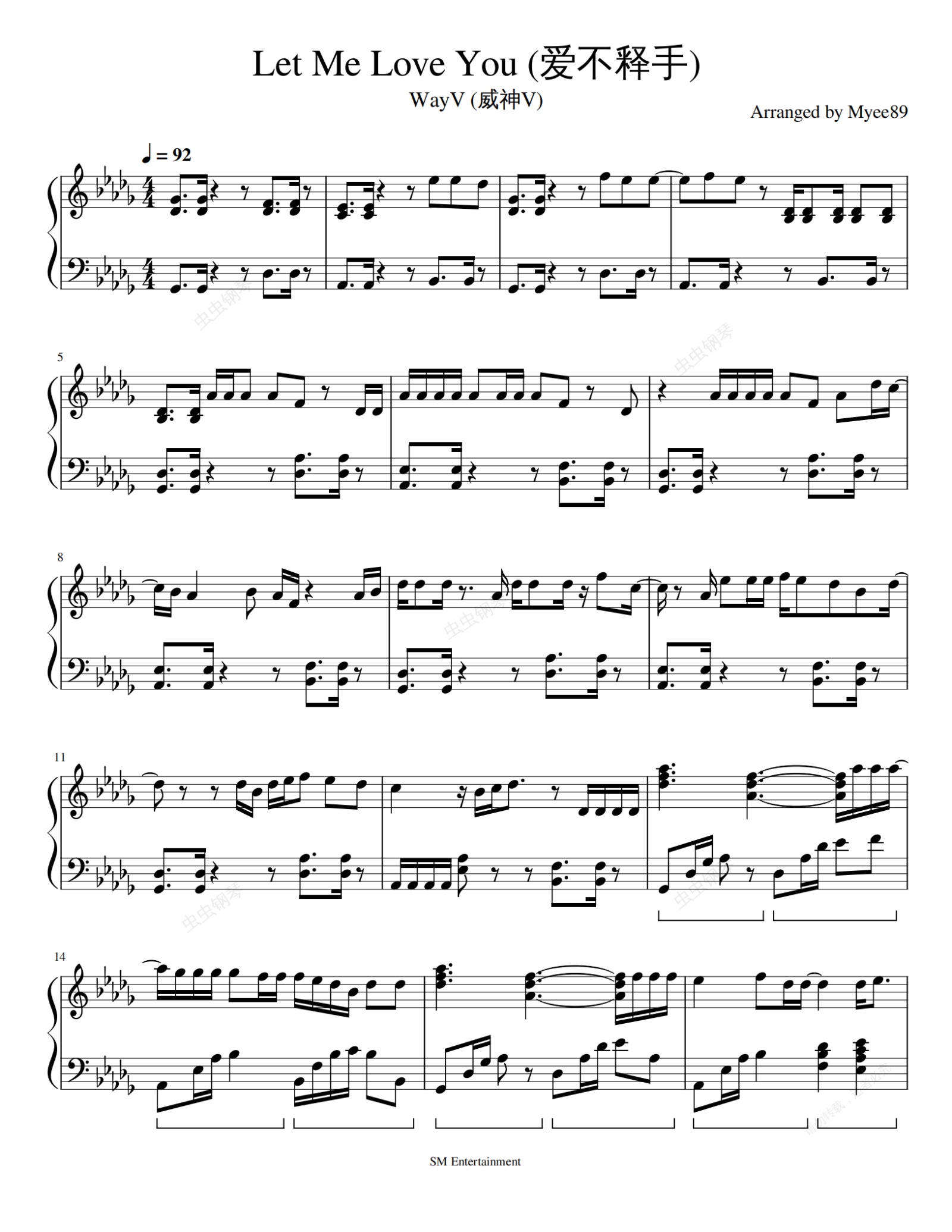 钢琴谱:威神V (WAYV) - 爱不释手 (Let Me Love You) 钢琴谱