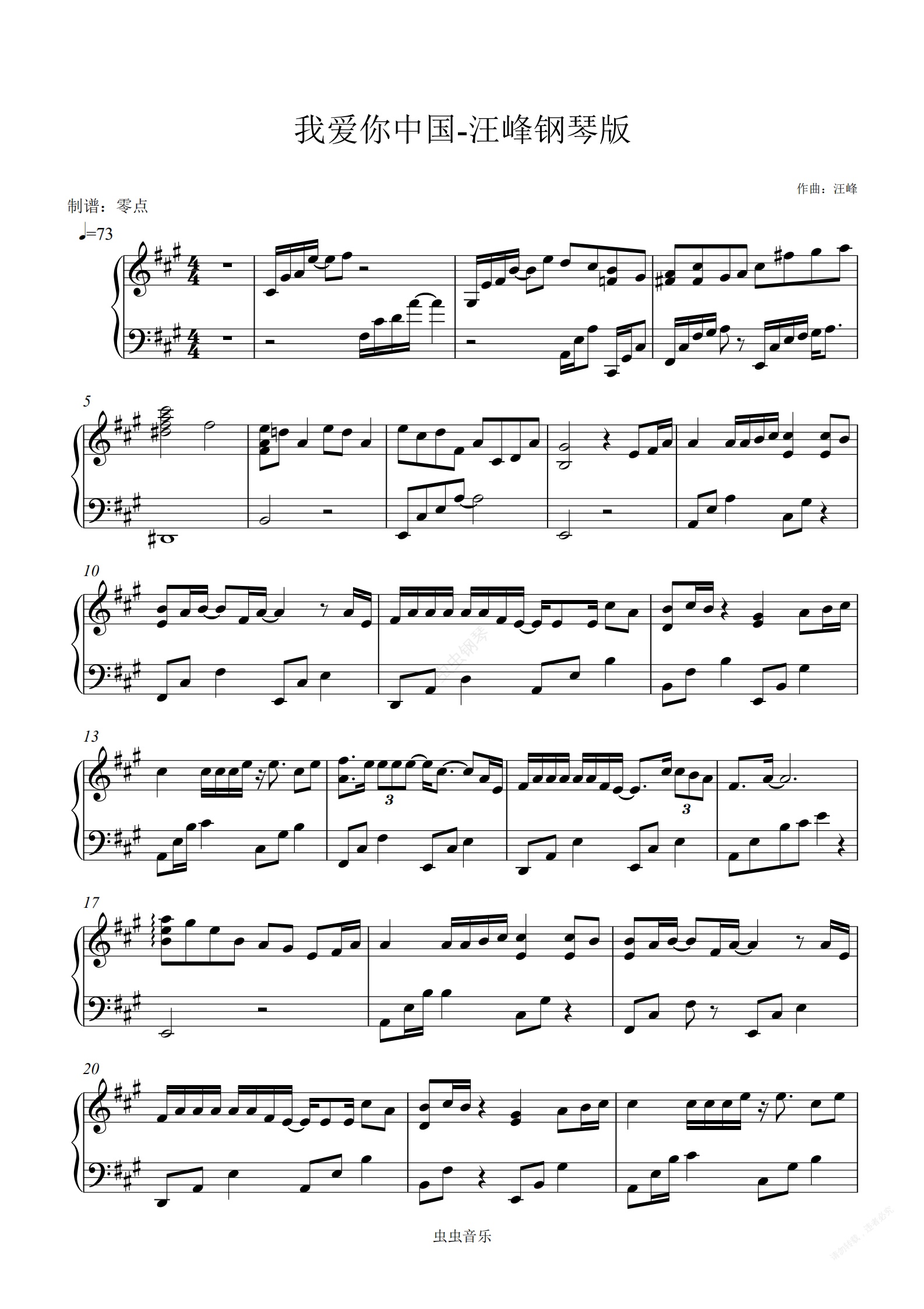 钢琴谱:我爱你中国-汪峰钢琴独奏版