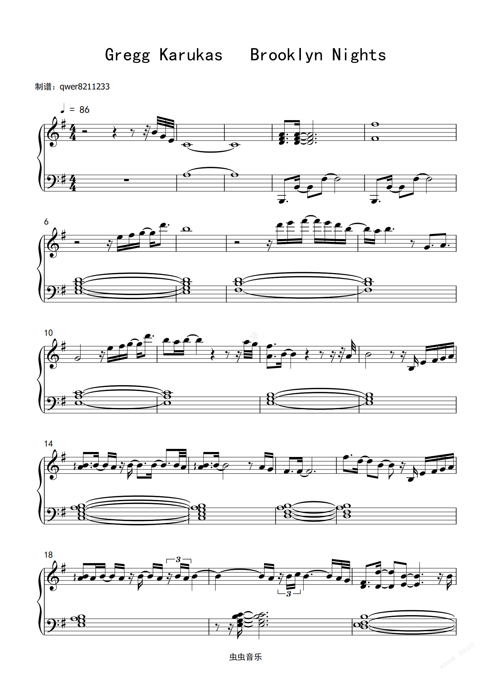 钢琴谱:Gregg Karukas - Brooklyn Nights