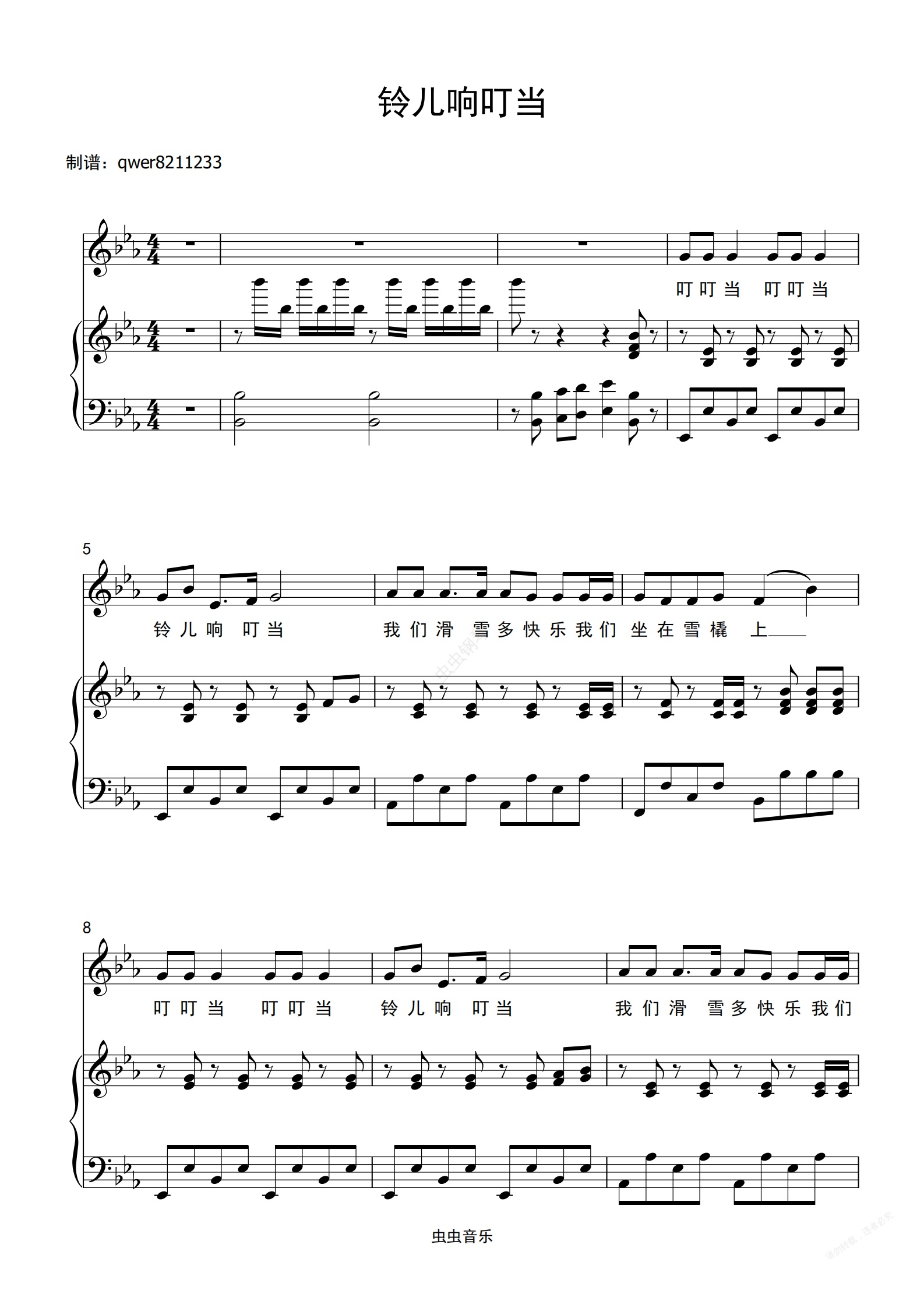 钢琴谱:铃儿响叮当踏雪寻梅(单声部)