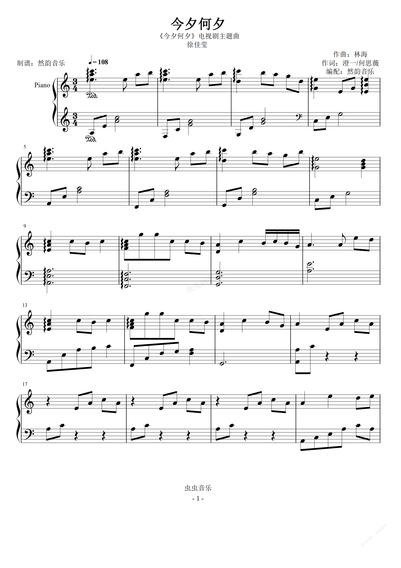 钢琴谱:今夕何夕-徐佳莹 (《今夕何夕》电视剧主题曲)
