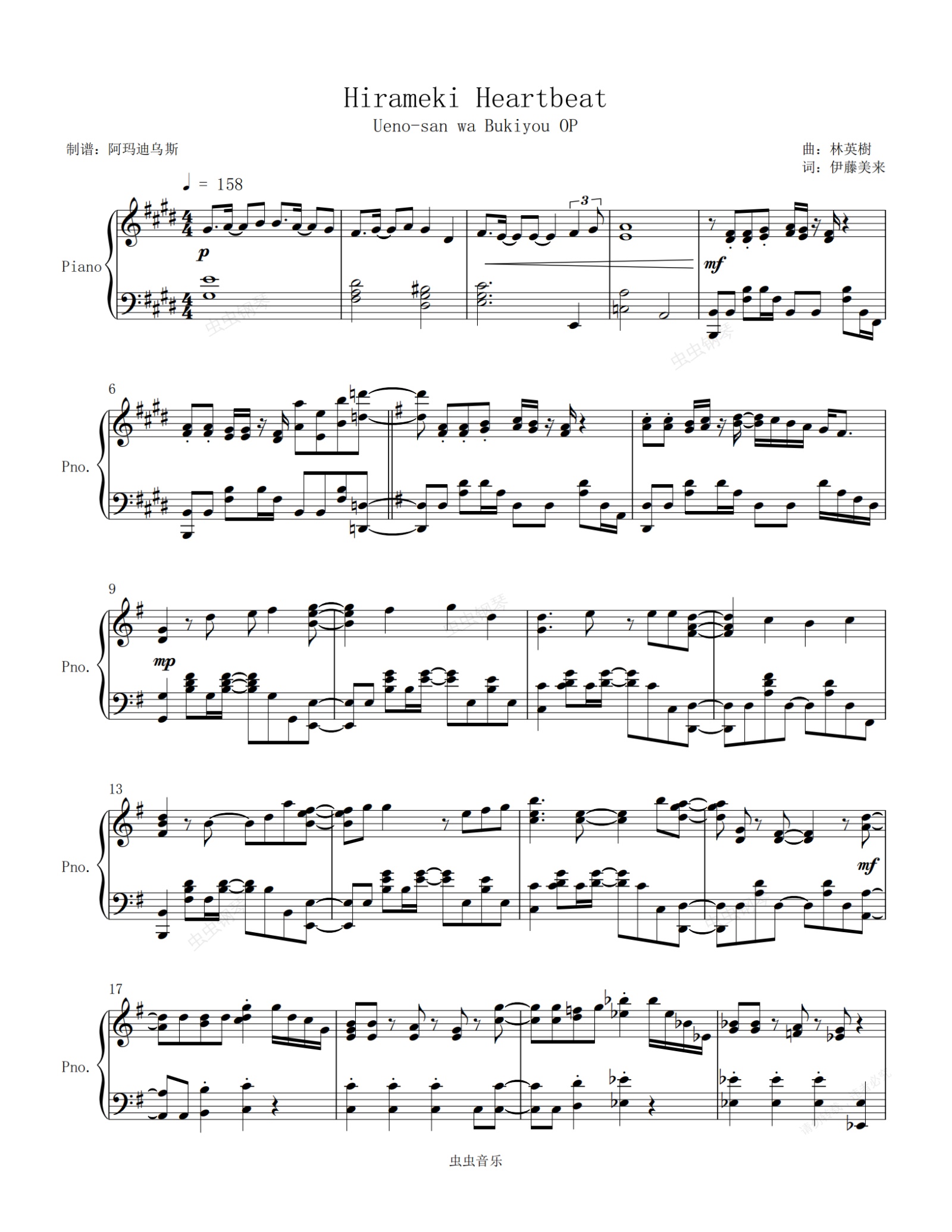 钢琴谱:笨拙之极的上野 OP < 闪きハートビート > 原调高还原完整版本