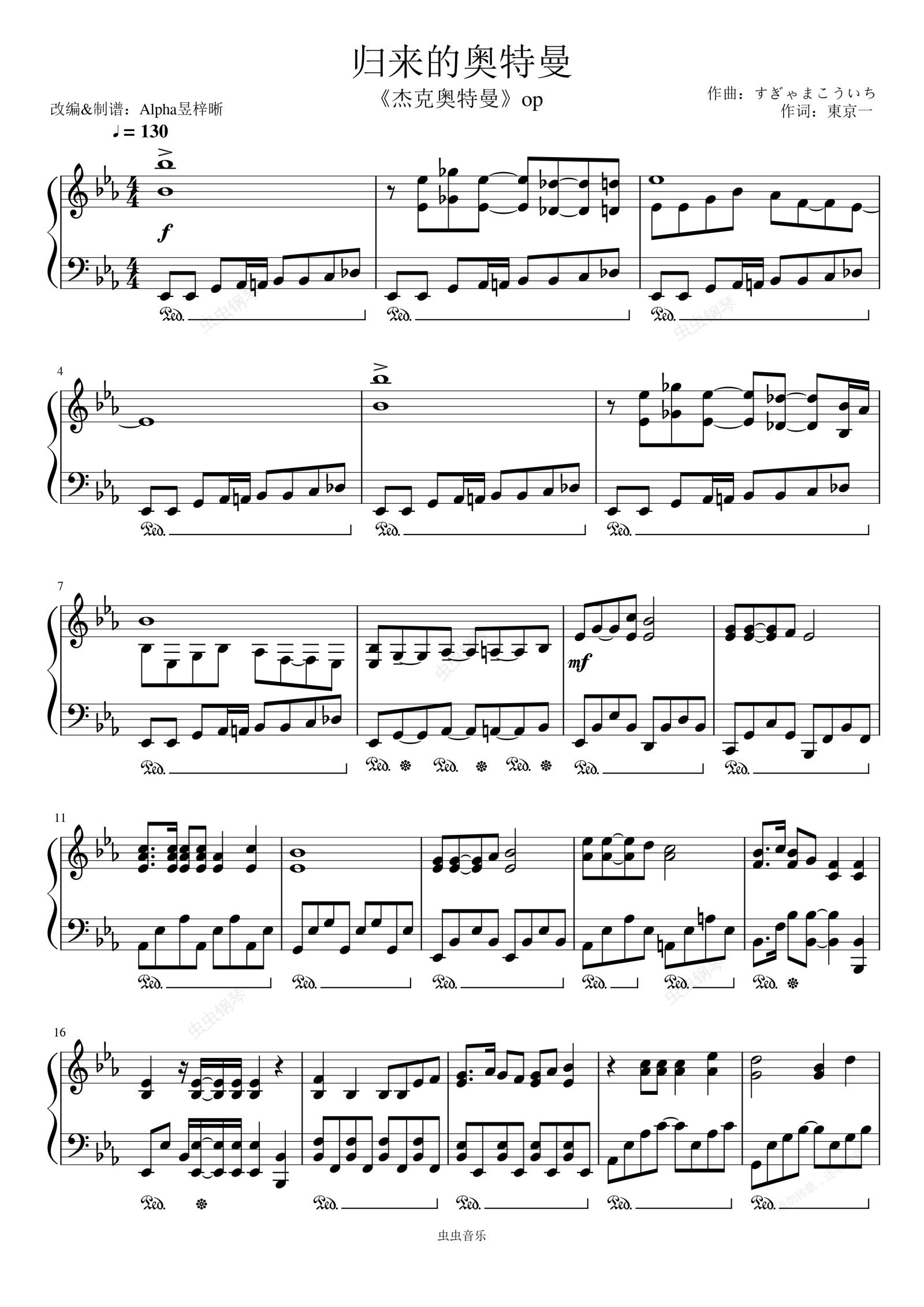 钢琴谱:归来的奥特曼《杰克奥特曼》op