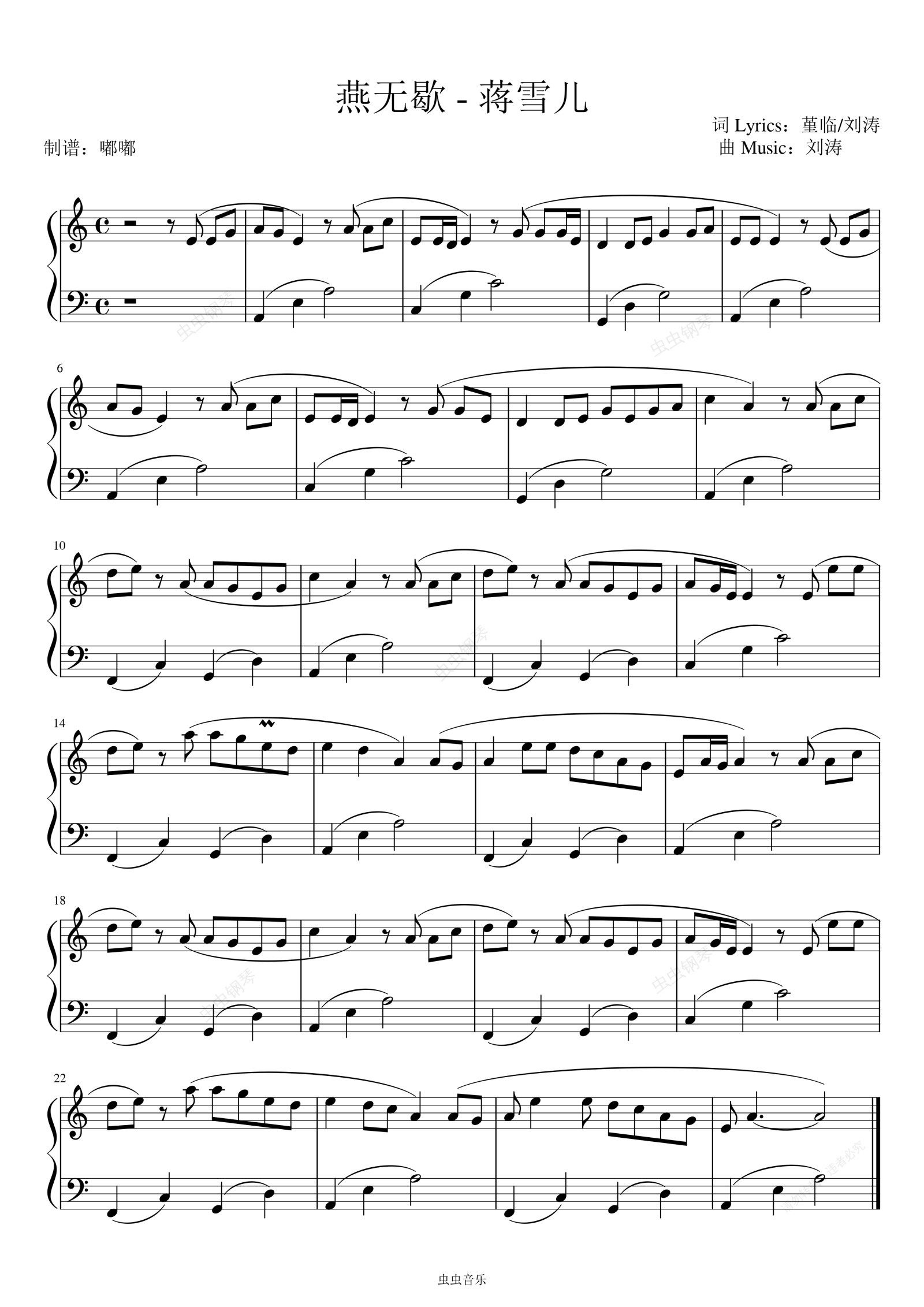 钢琴谱:《燕无歇》C调 - 蒋雪儿