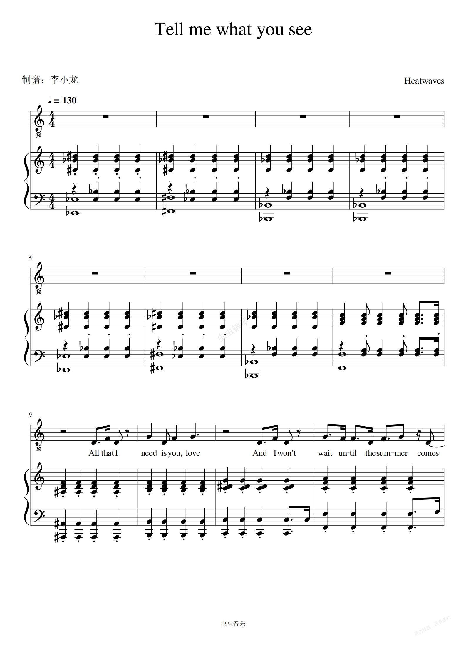 钢琴谱:《Tell me what you see》-Heatwaves(C调弹唱版带歌词))