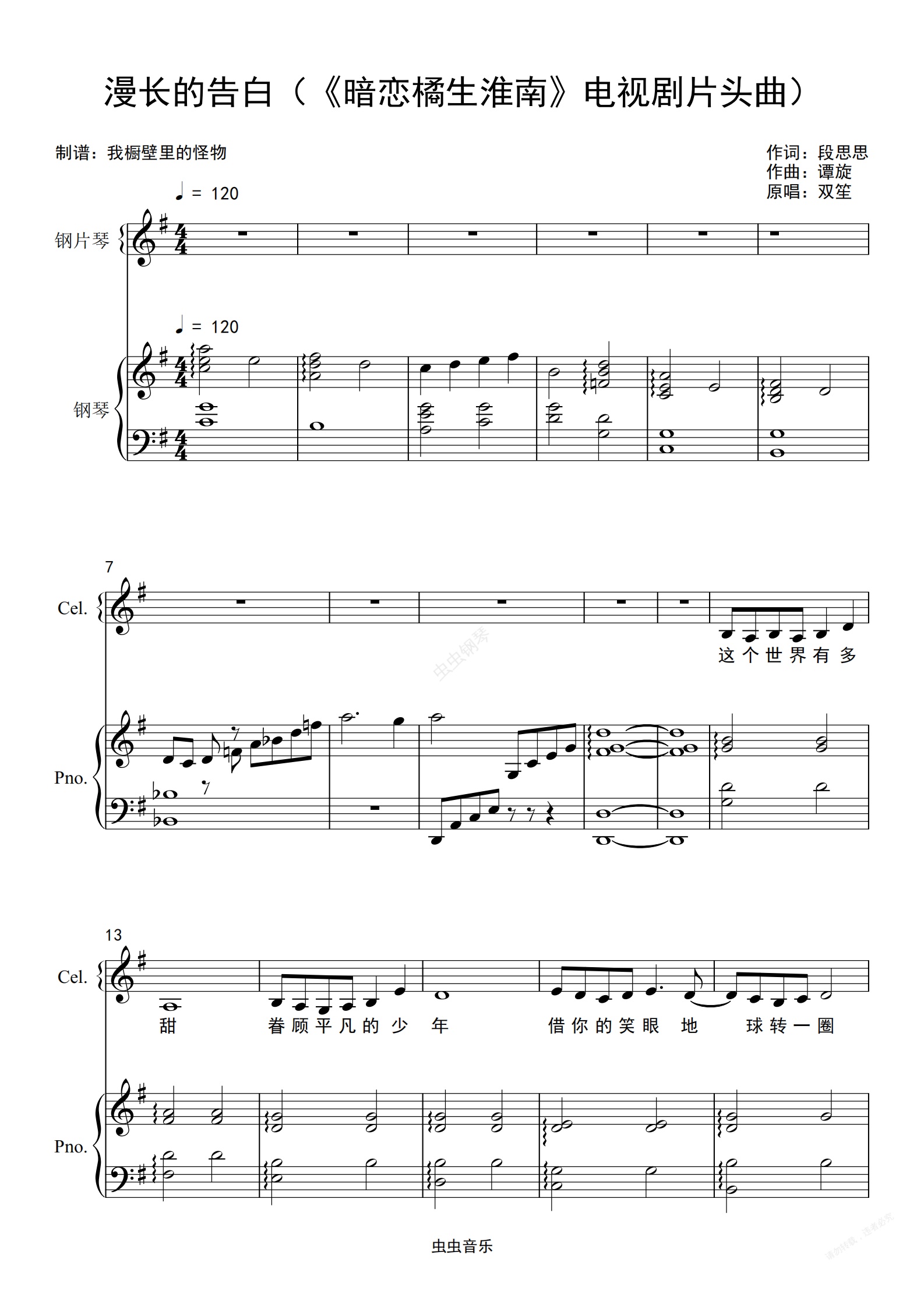 钢琴谱:漫长的告白(《暗恋橘生淮南》电视剧片头曲)【原调钢琴弹唱】