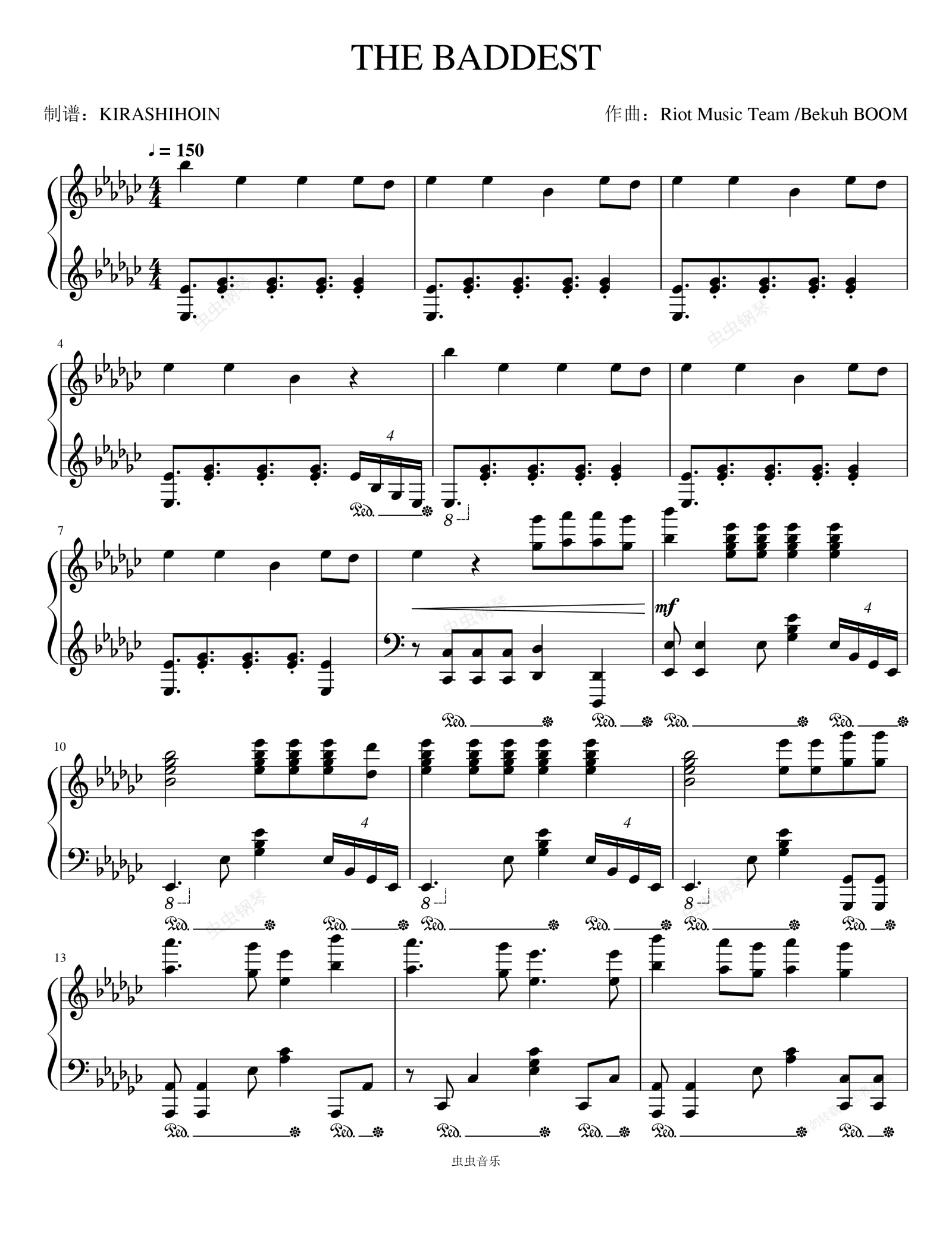 钢琴谱:THE BADDEST(《英雄联盟》K/DA女团歌曲)