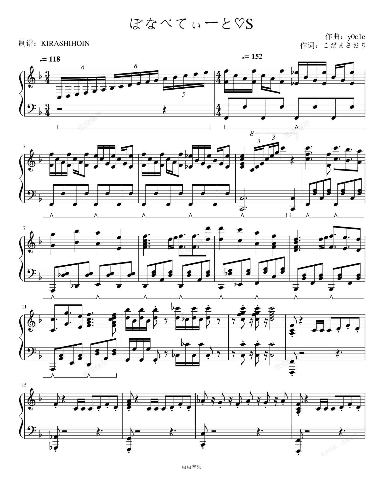 钢琴谱:ぼなぺてぃーと♡S(《调教咖啡厅》OP)