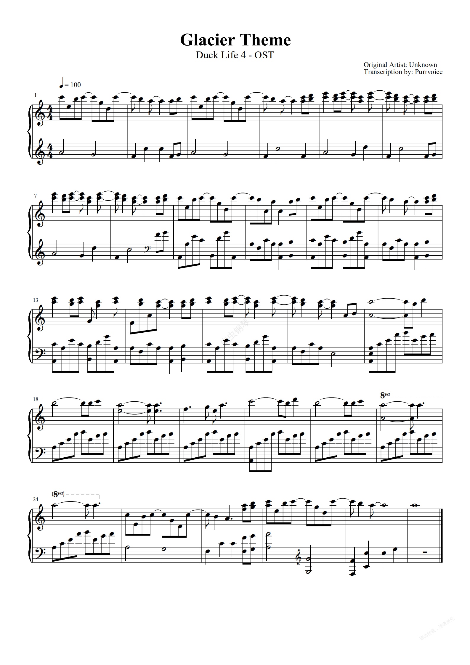 钢琴谱:Glacier Theme - Duck Life 4 OST