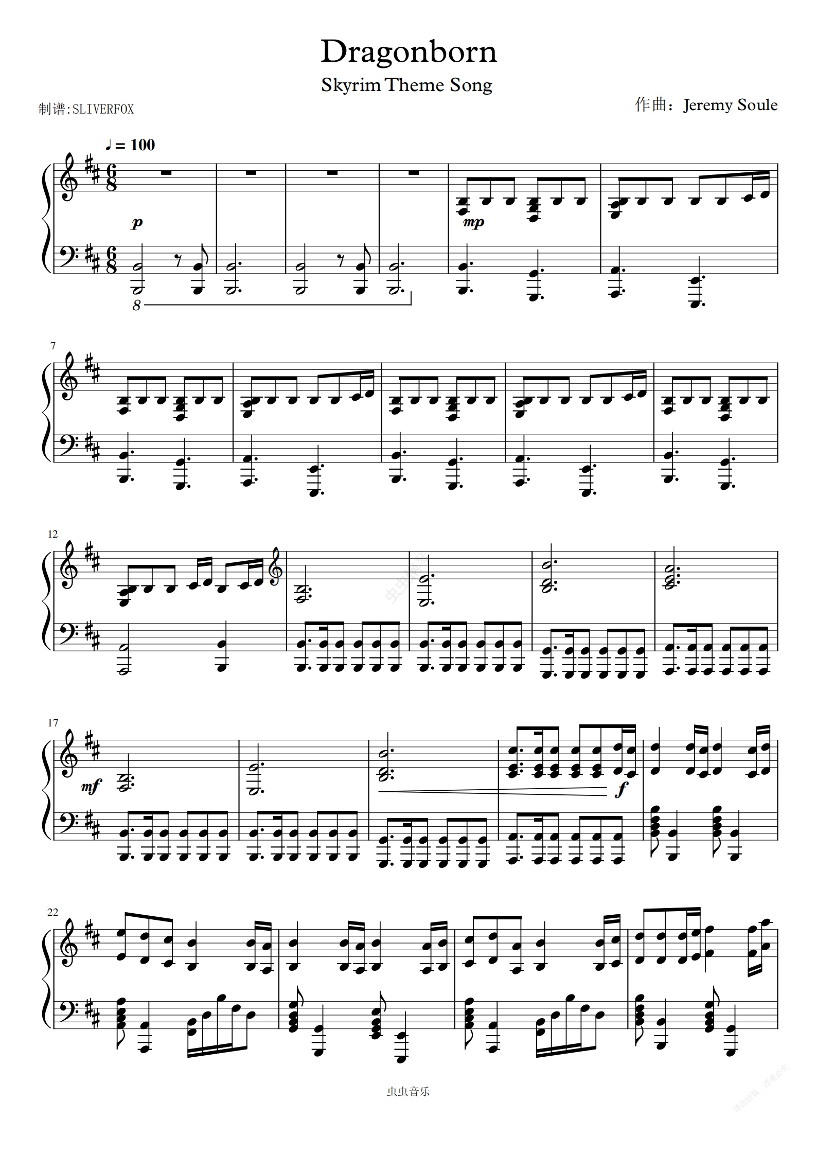 钢琴谱:《Dragonborn》上古卷轴天际主题曲 龙裔