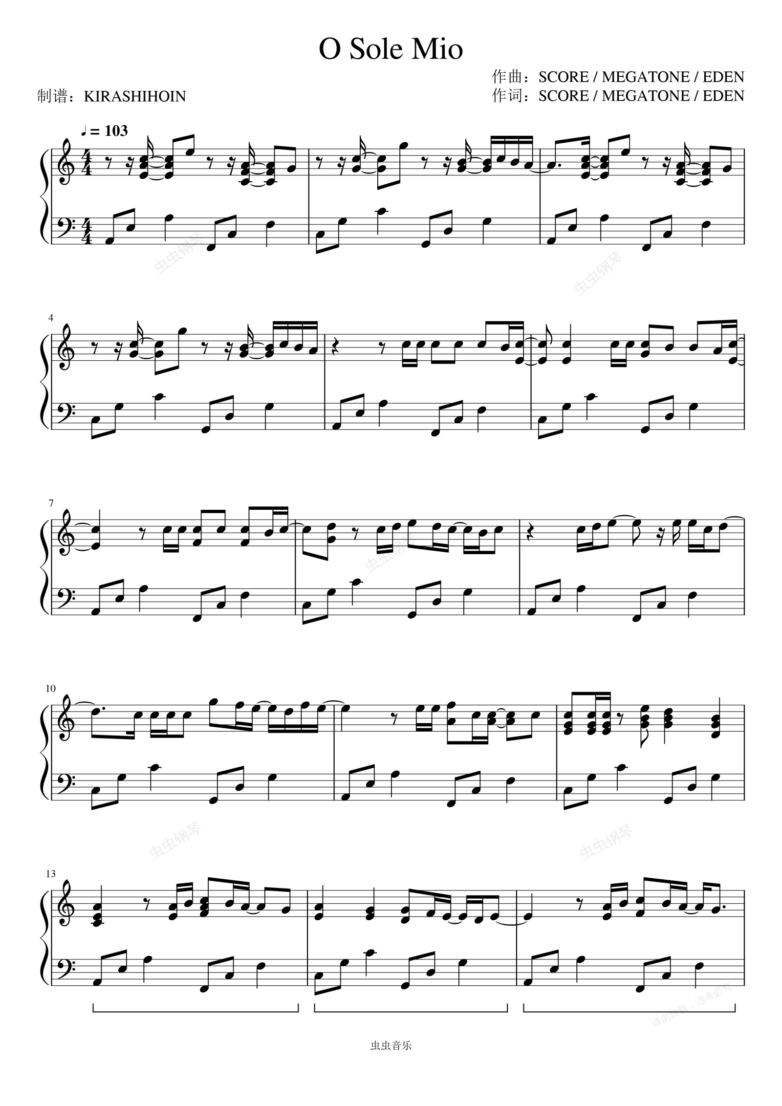 钢琴谱:O Sole Mio