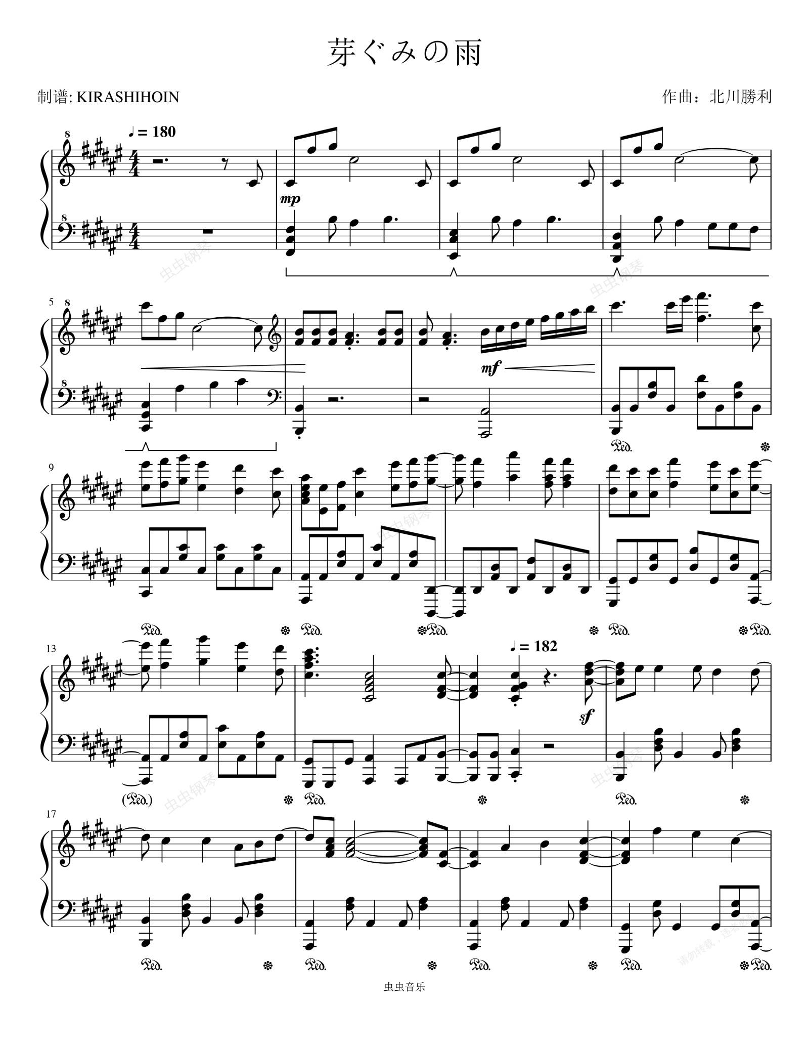 钢琴谱:芽ぐみの雨(《我的青春恋爱物语果然有问题 第三季》OP)