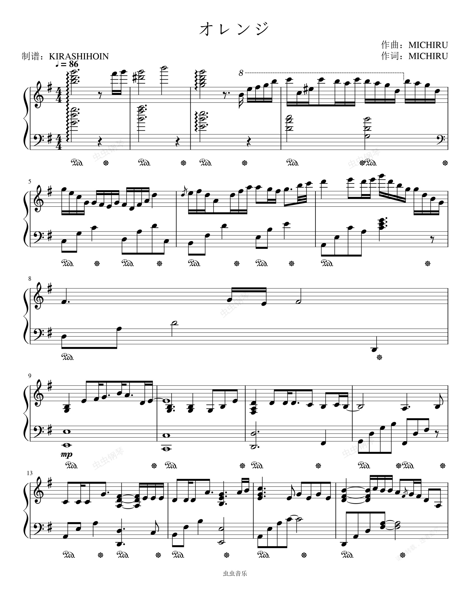 钢琴谱:オレンジ (《四月是你的谎言》ED)