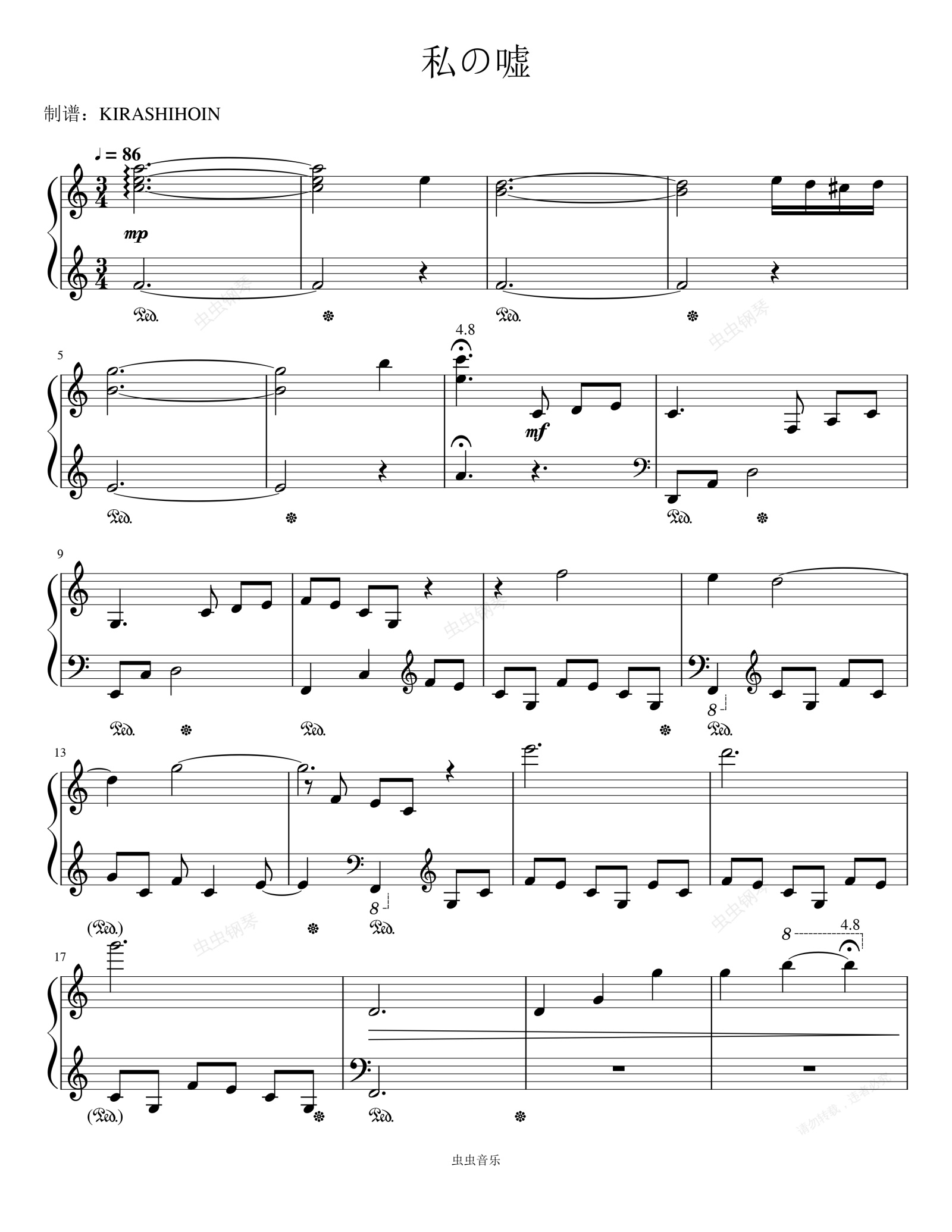 钢琴谱:私の嘘(《四月是你的谎言》插曲)
