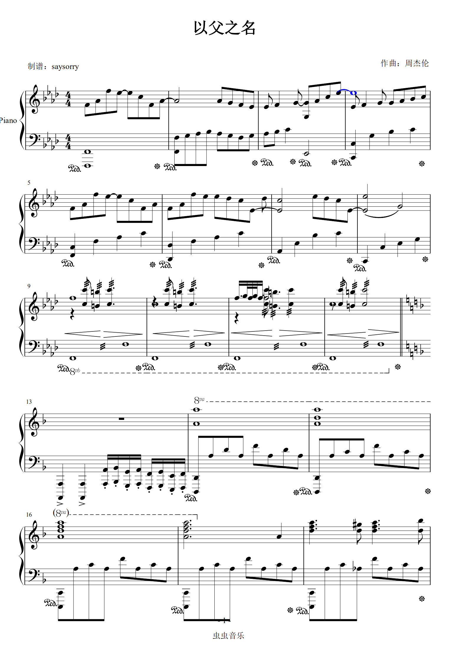钢琴谱:《以父之名》钢琴独奏华丽版