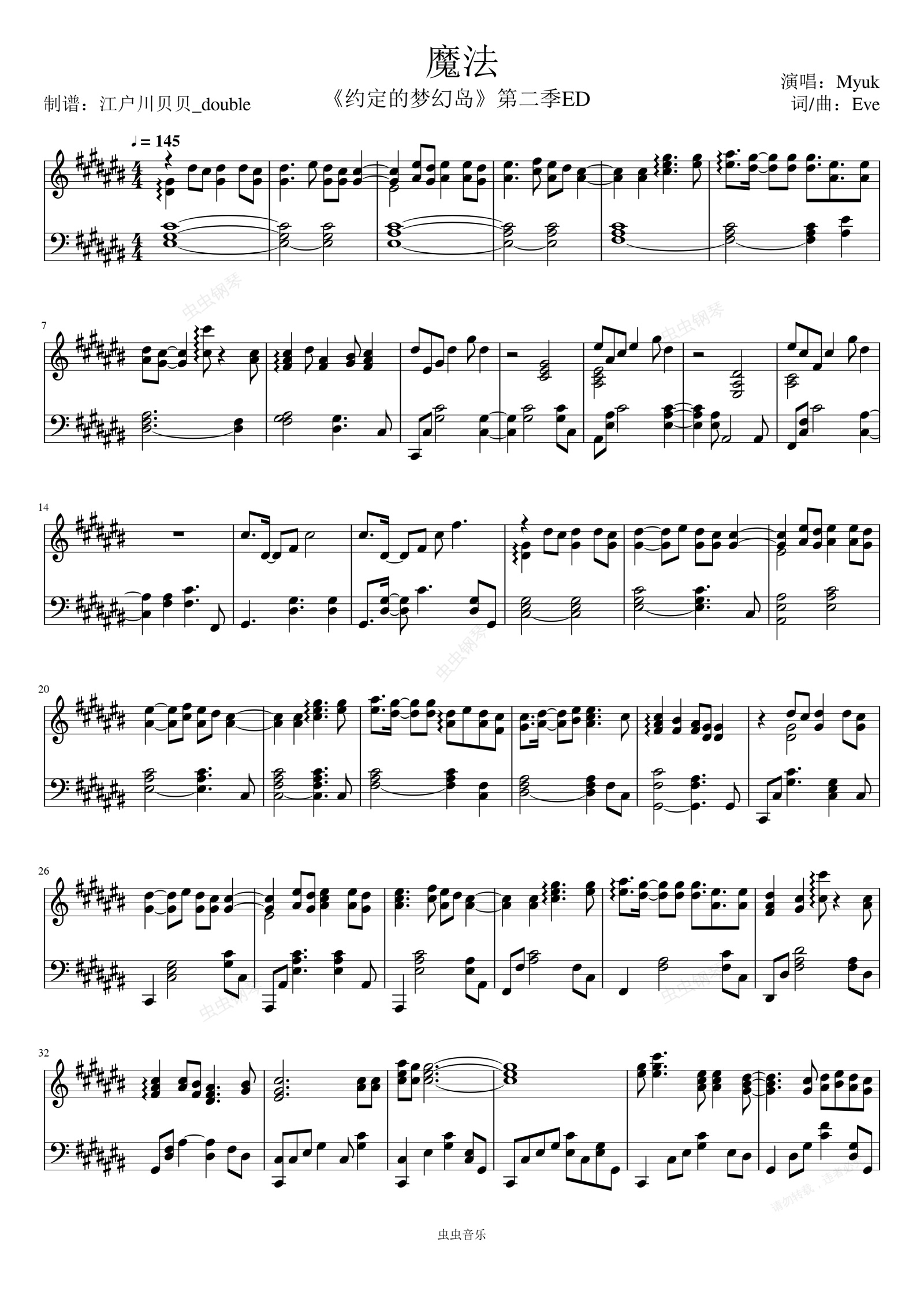 钢琴谱:【约定的梦幻岛】第二季ED《魔法》(Myuk)