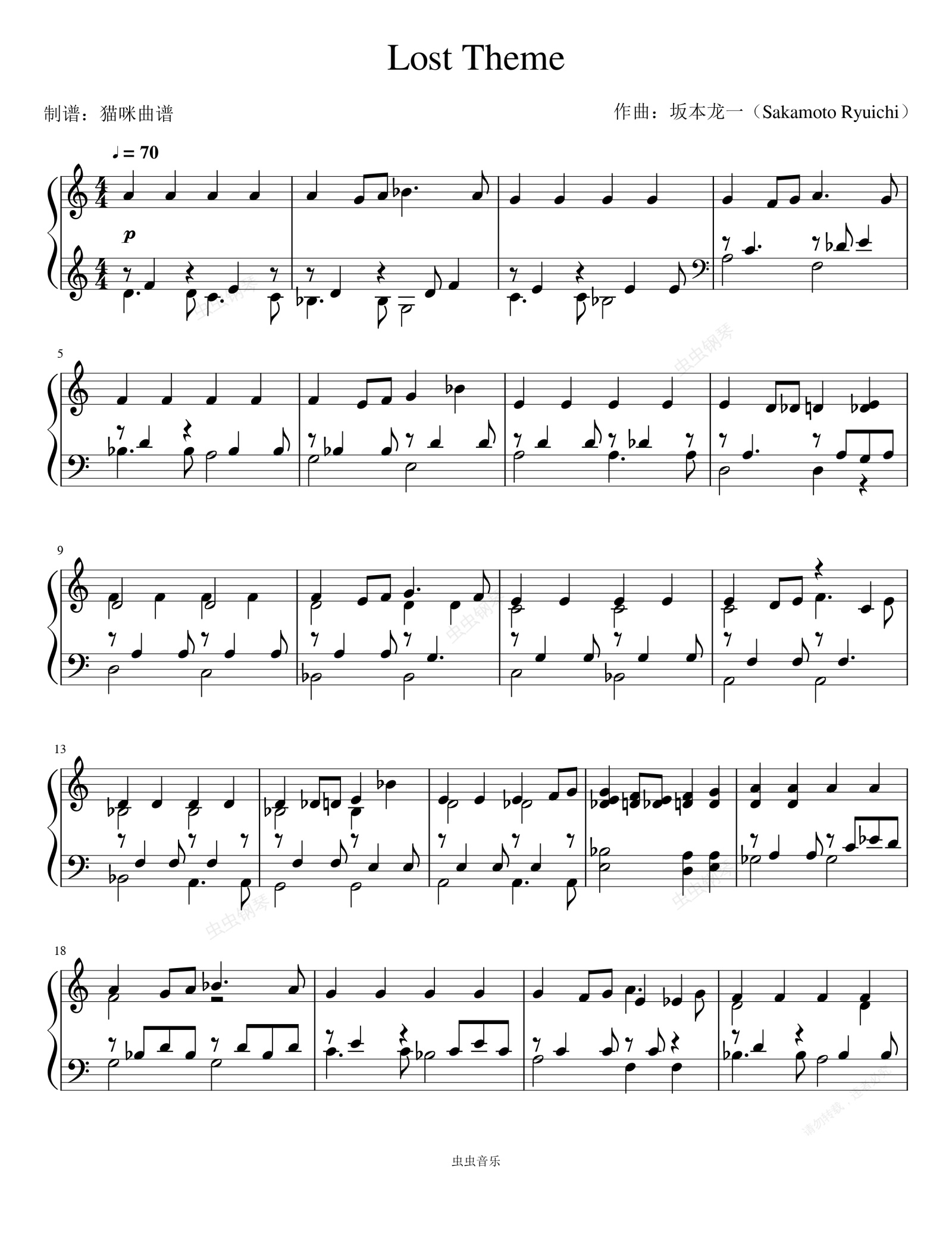 钢琴谱:《Lost Theme》-坂本龙一(Sakamoto Ryuichi)