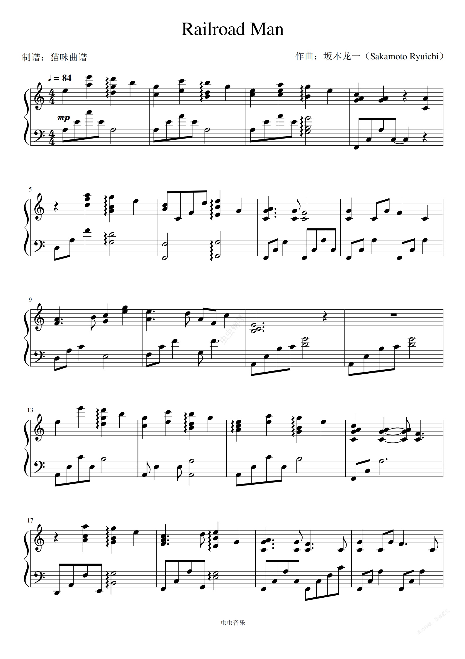 钢琴谱:《Railroad Man》-坂本龙一(Sakamoto Ryuichi)