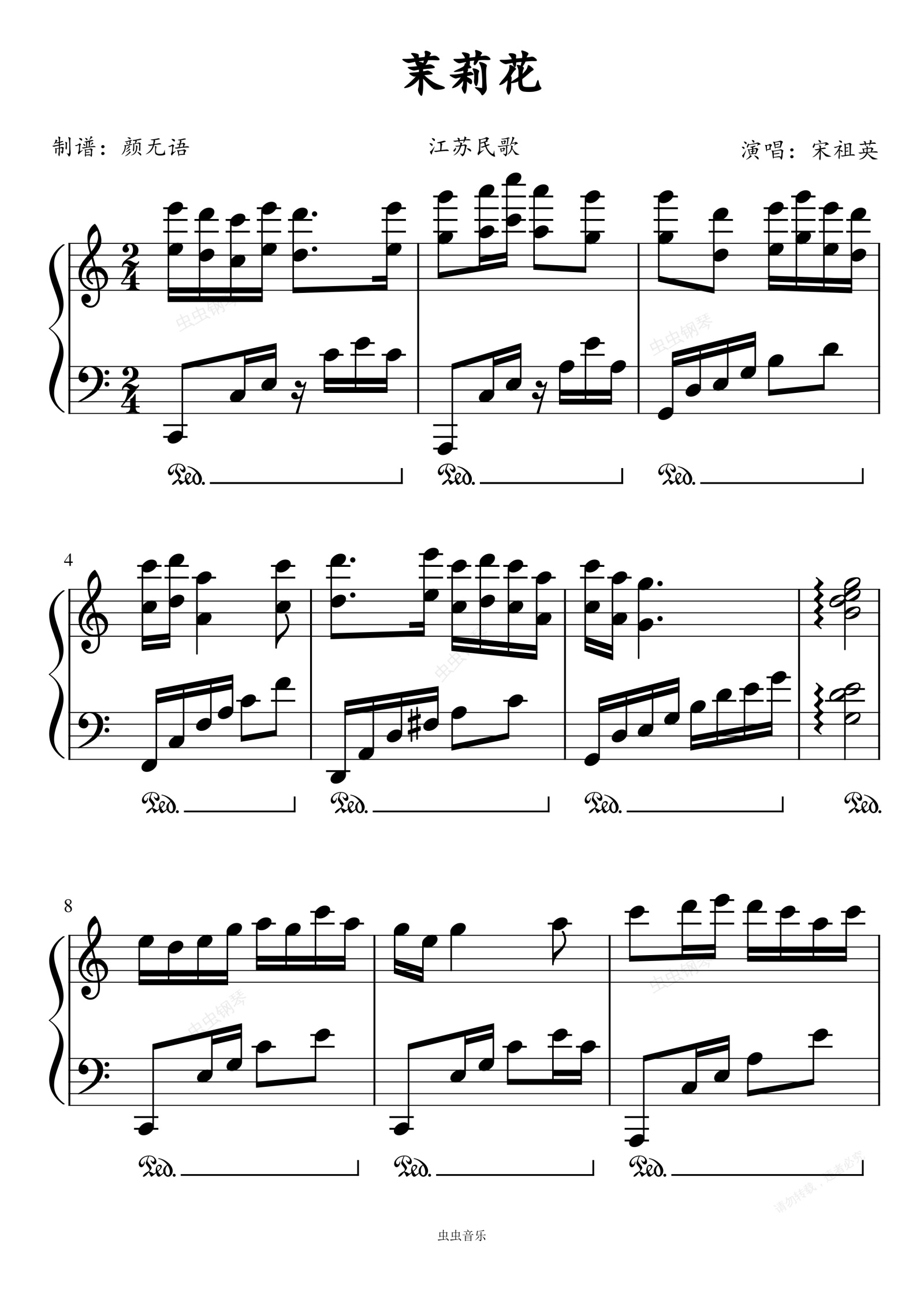钢琴谱:江苏民歌/茉莉花 C调 精简版好听!