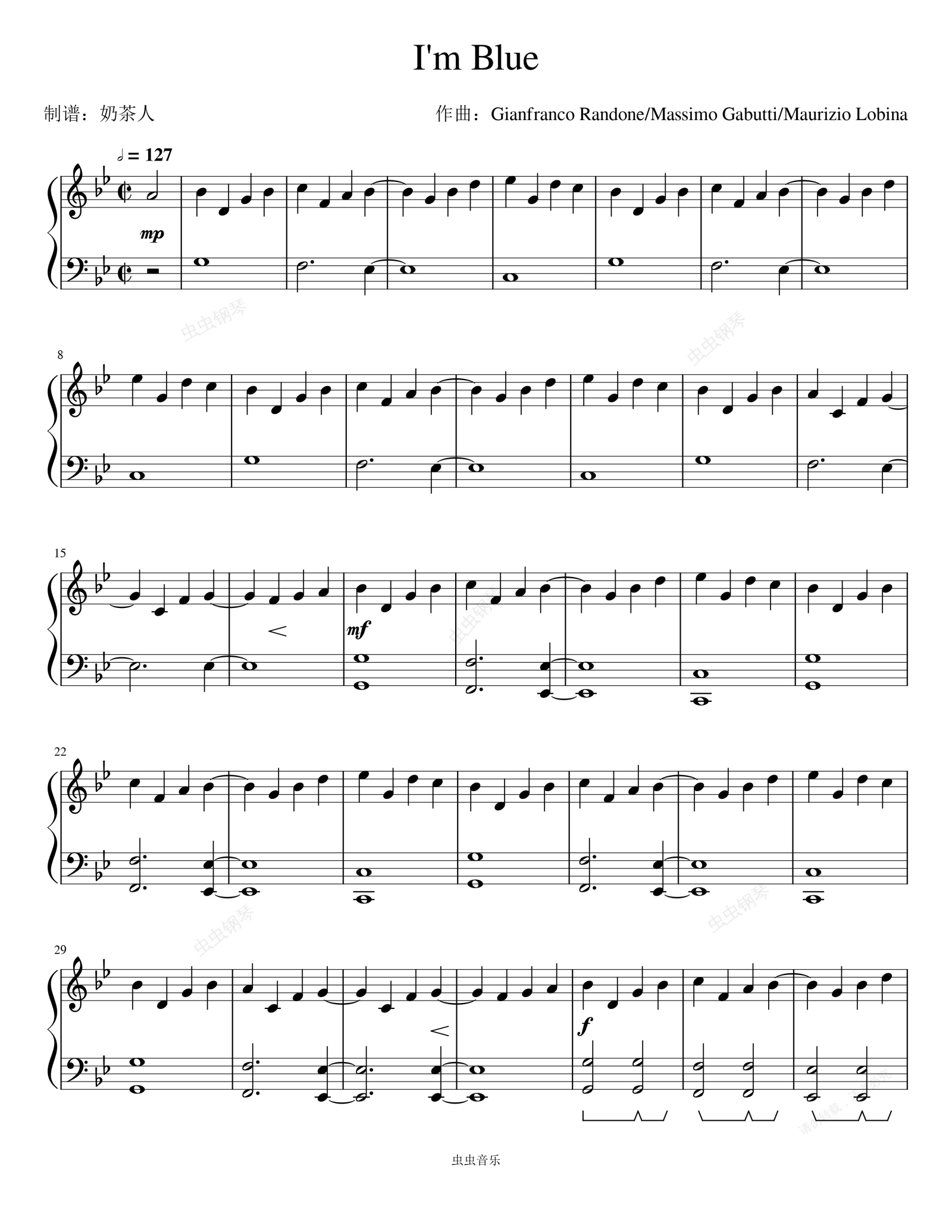 钢琴谱:《Blue (Da Ba Dee)》一首老DJ舞曲风格的钢琴曲简易完美版