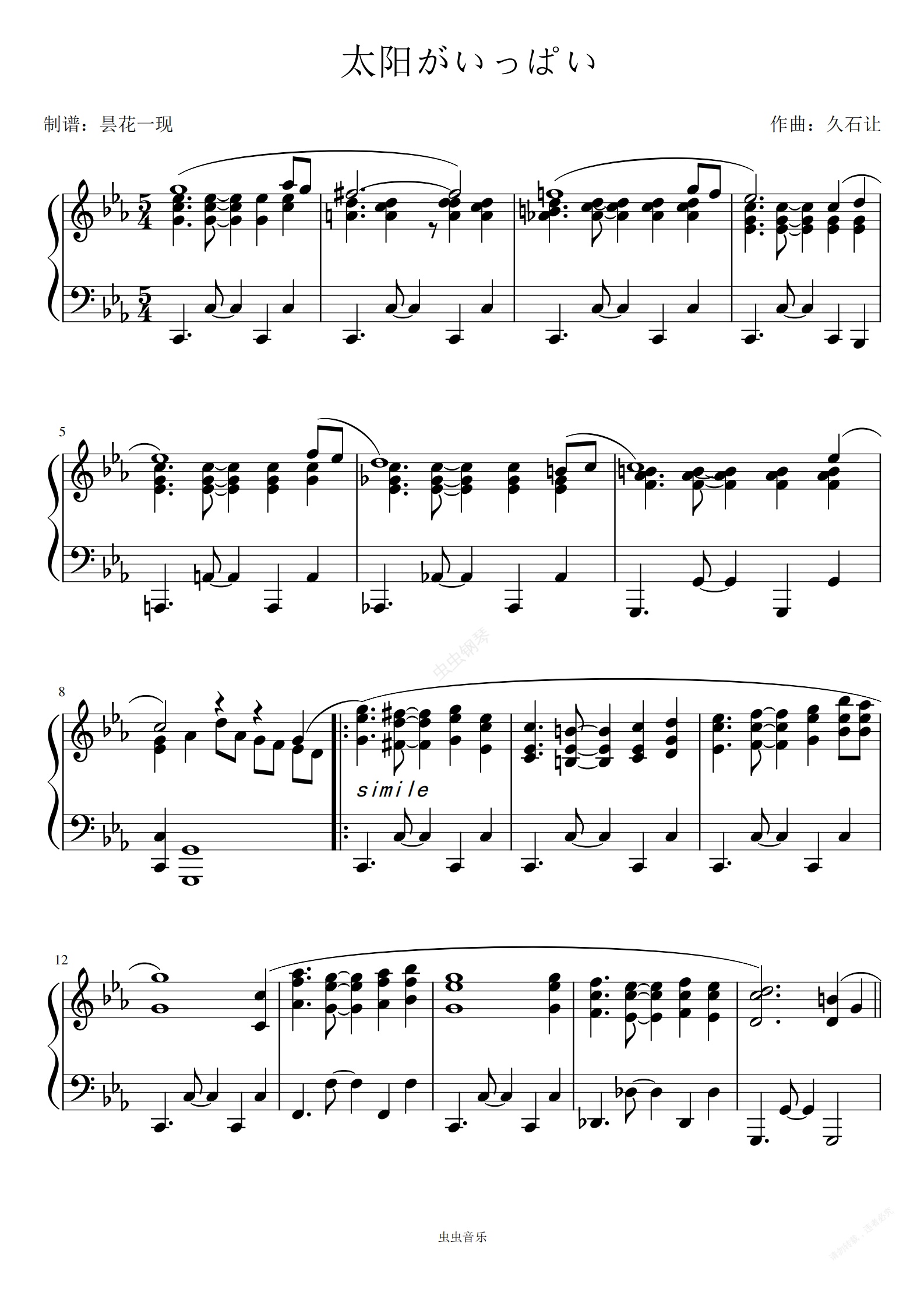 钢琴谱:太阳がいっぱい
