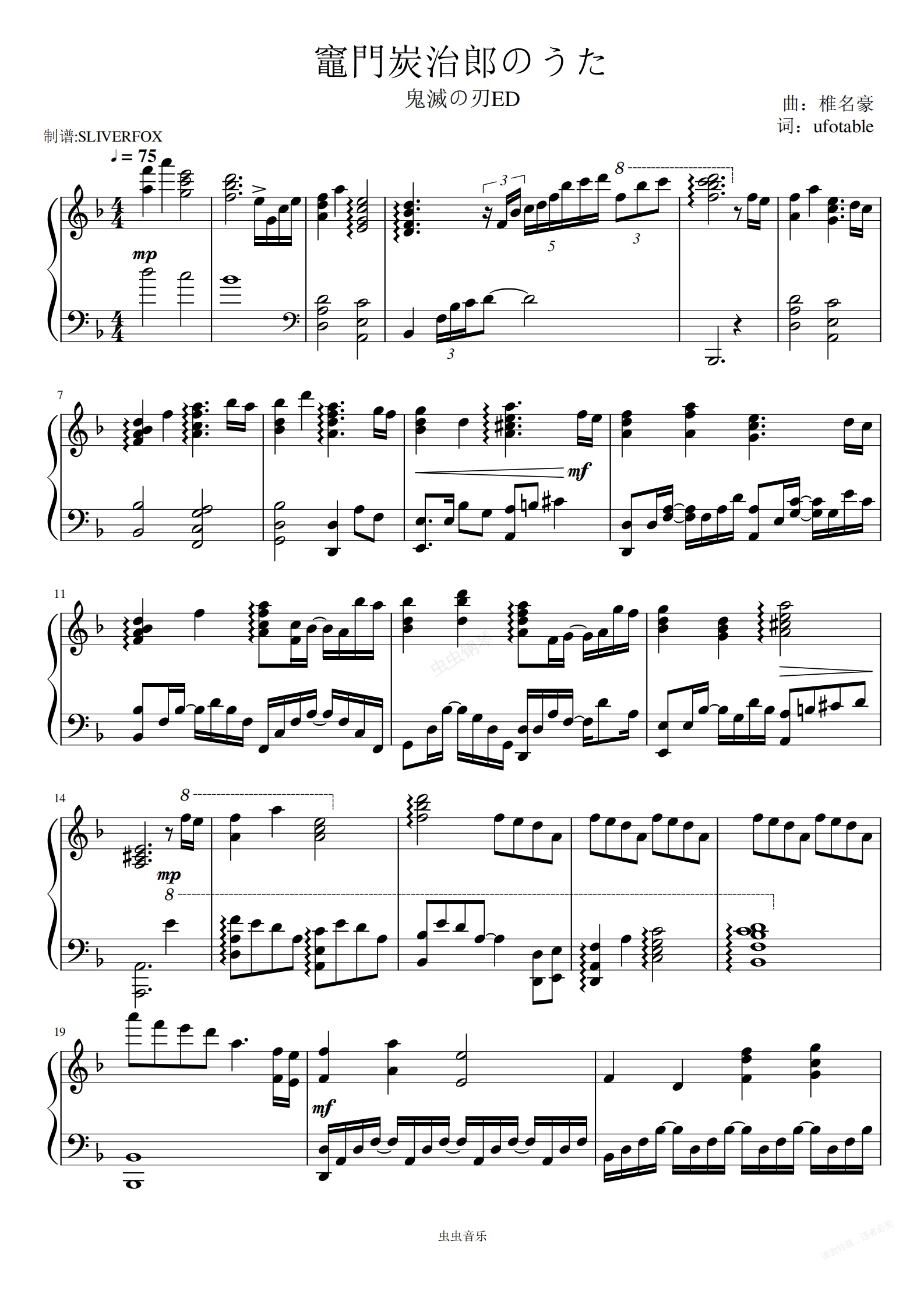 钢琴谱:《竈門炭治郎のうた》鬼灭之刃片尾曲完美版