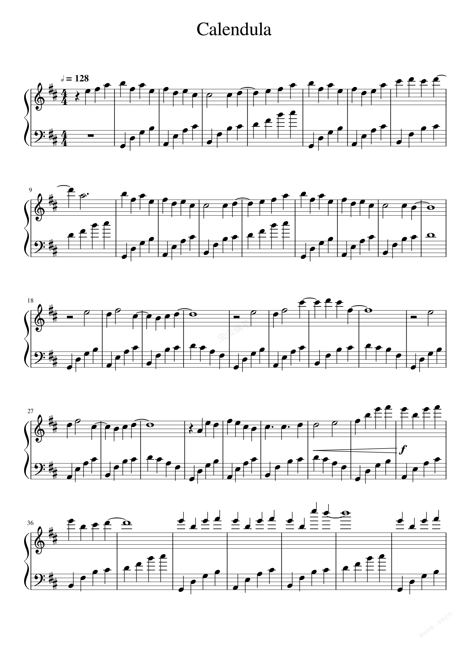 钢琴谱:Calendula