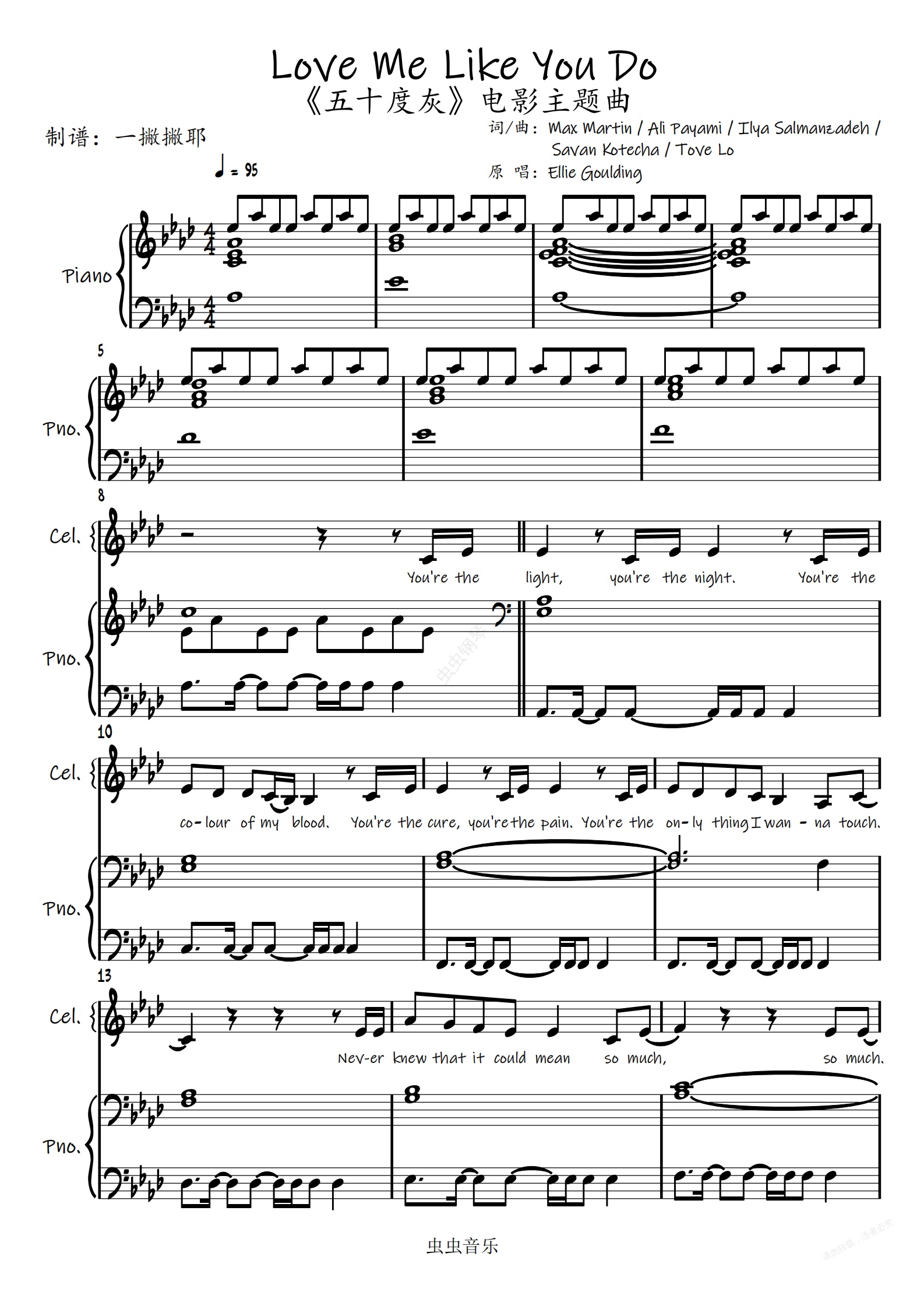钢琴谱:【弹唱谱】Love Me Like You Do-Ellie Goulding《五十度灰》「一撇撇耶」