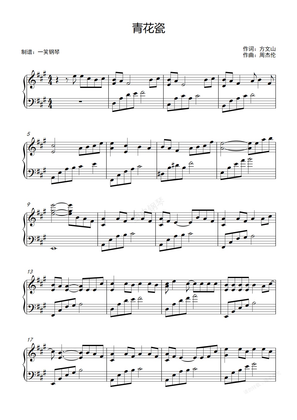 钢琴谱:青花瓷-周杰伦 【超级好听版】