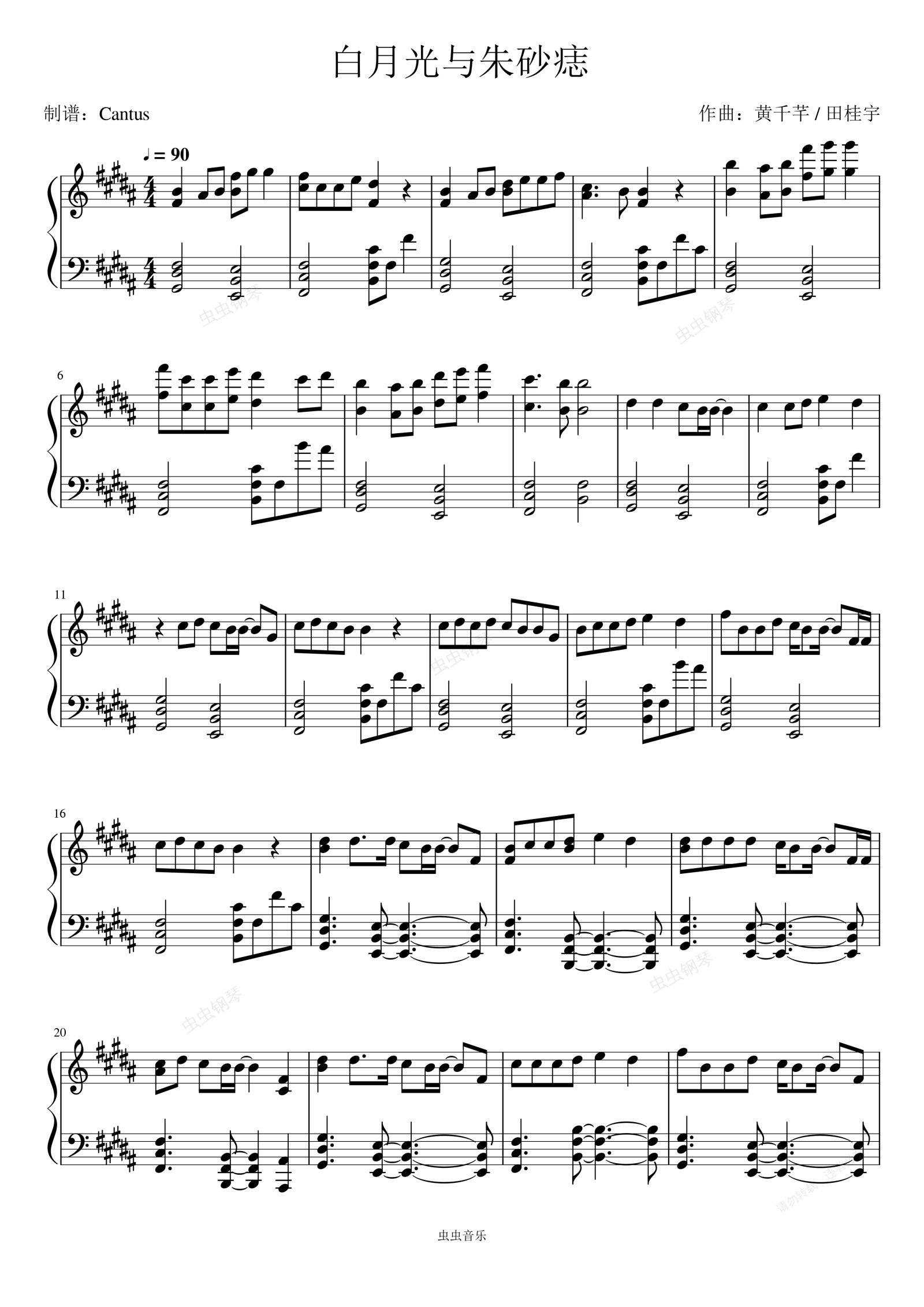 钢琴谱:白月光与朱砂痣-大籽
