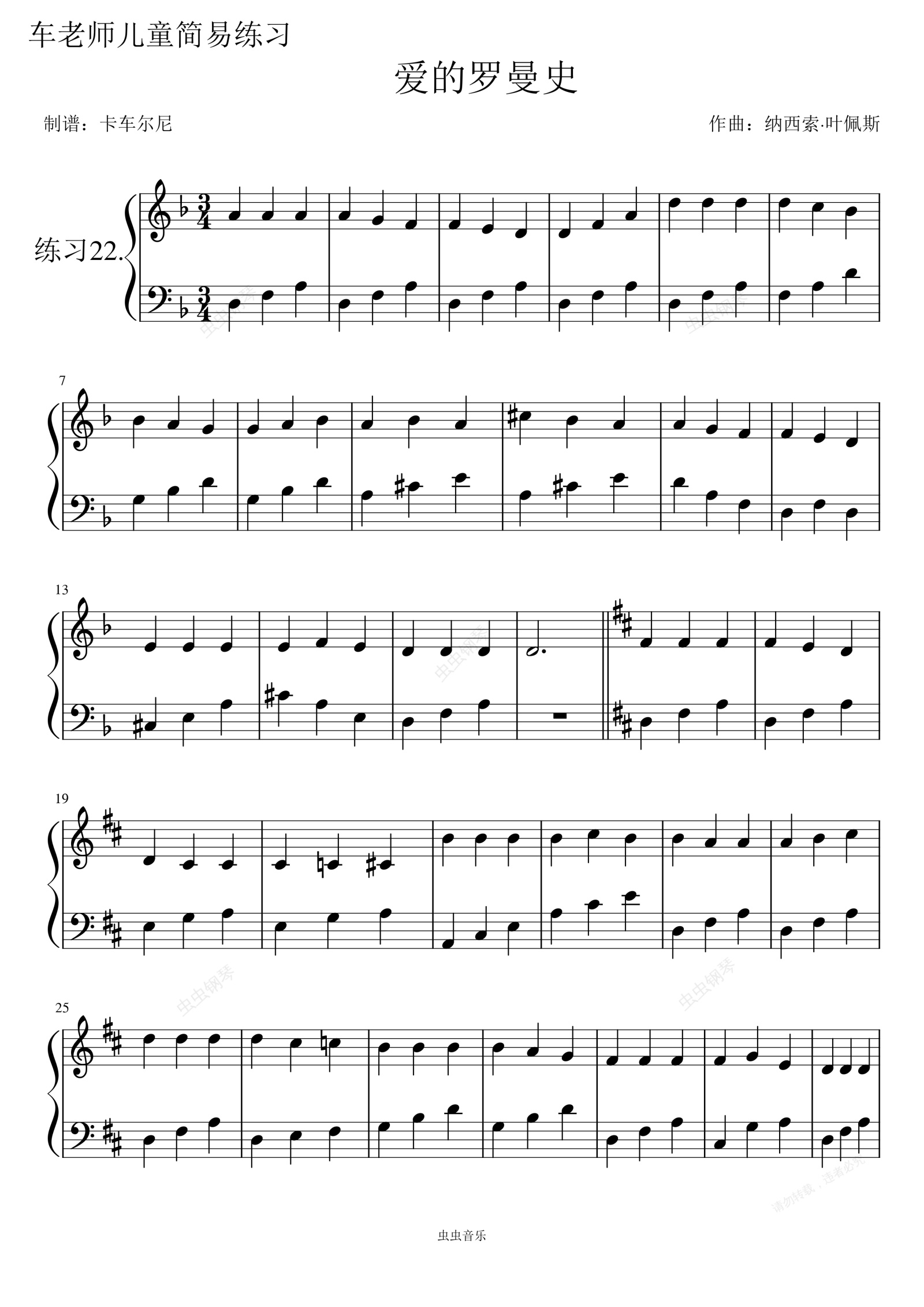 钢琴谱:爱的罗曼史 儿童简易版 小汤3难度