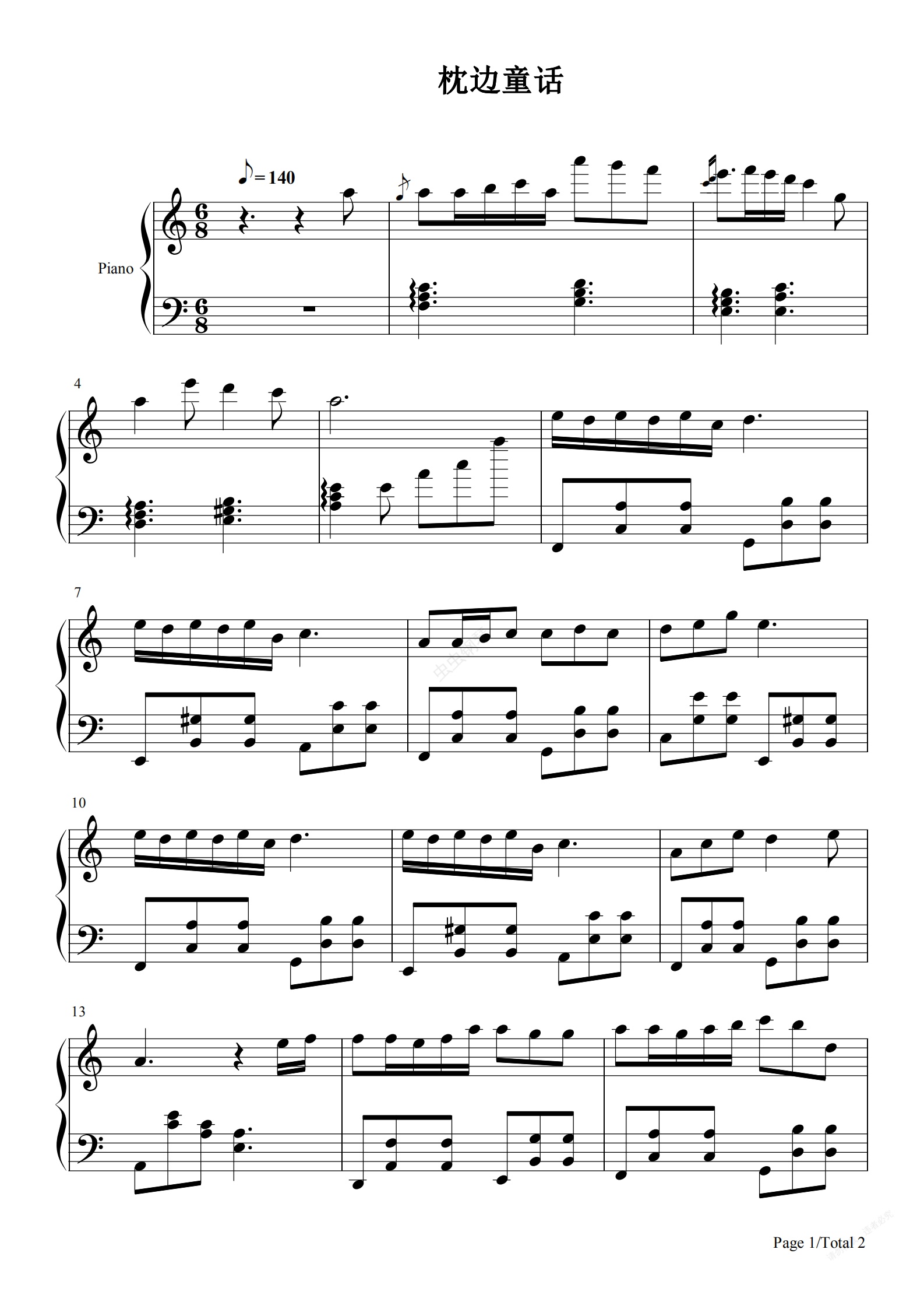 钢琴谱:枕边童话 简单版
