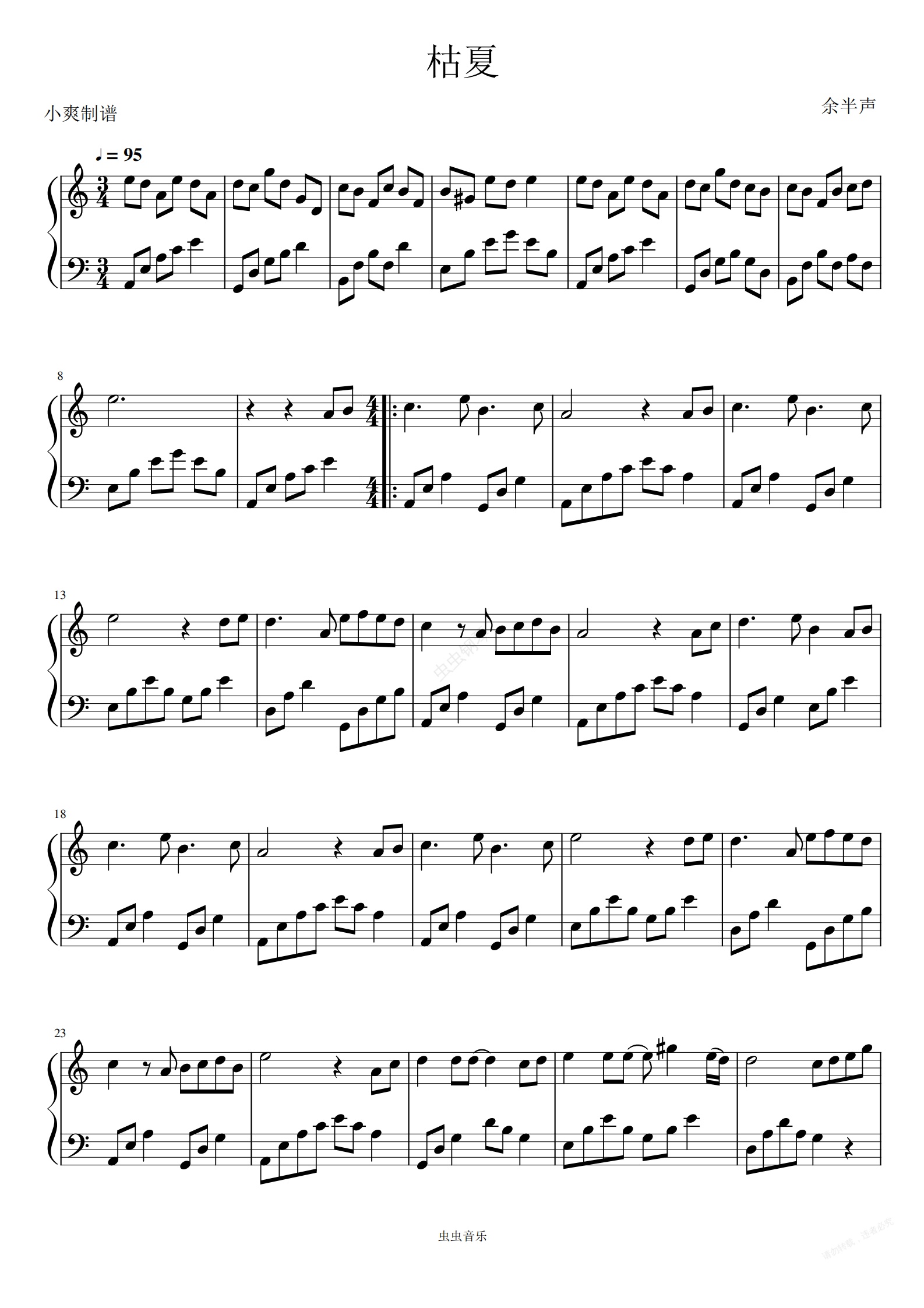 钢琴谱:枯夏