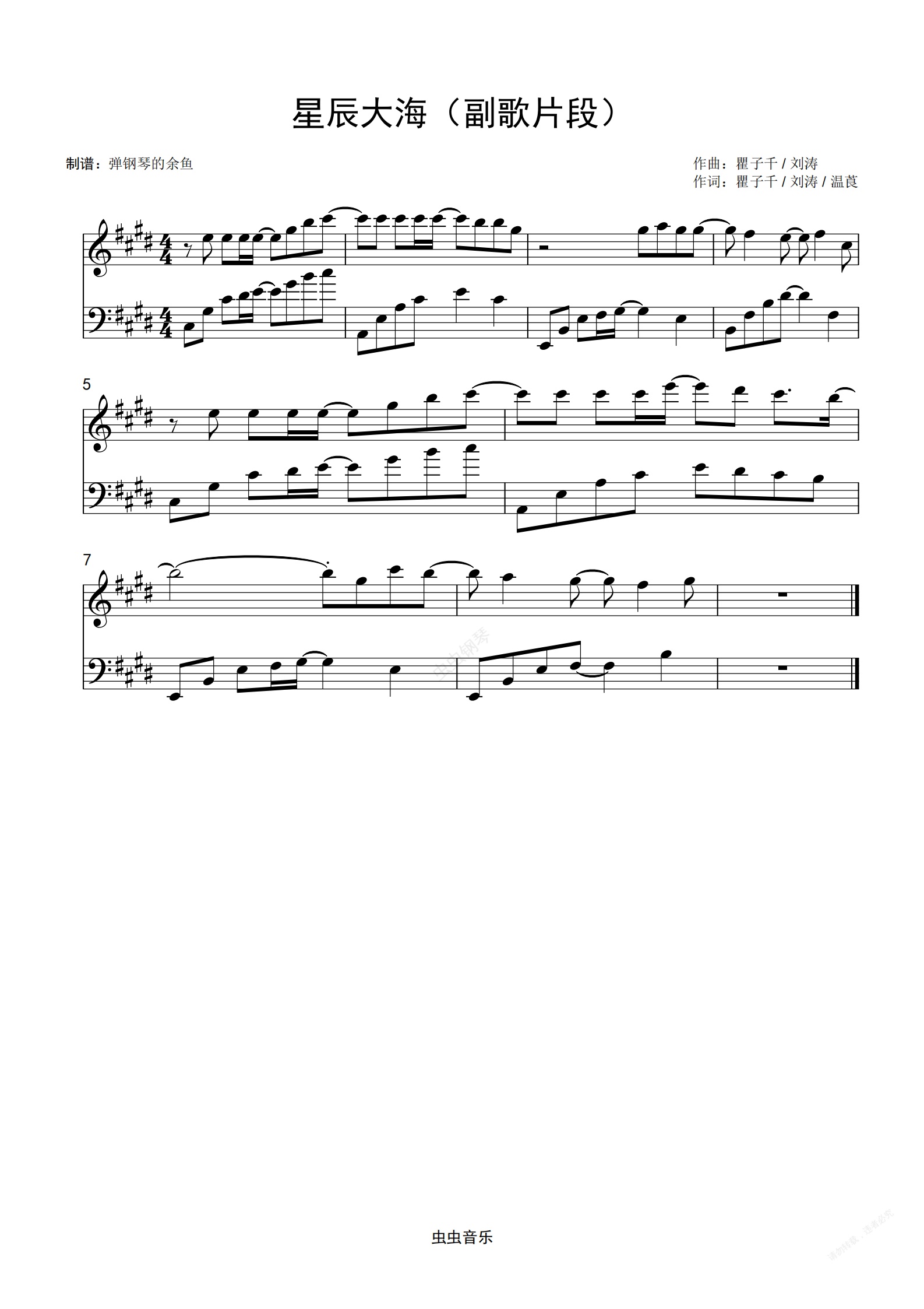 钢琴谱:星辰大海黄霄云新手好听易学单音版抖音热歌