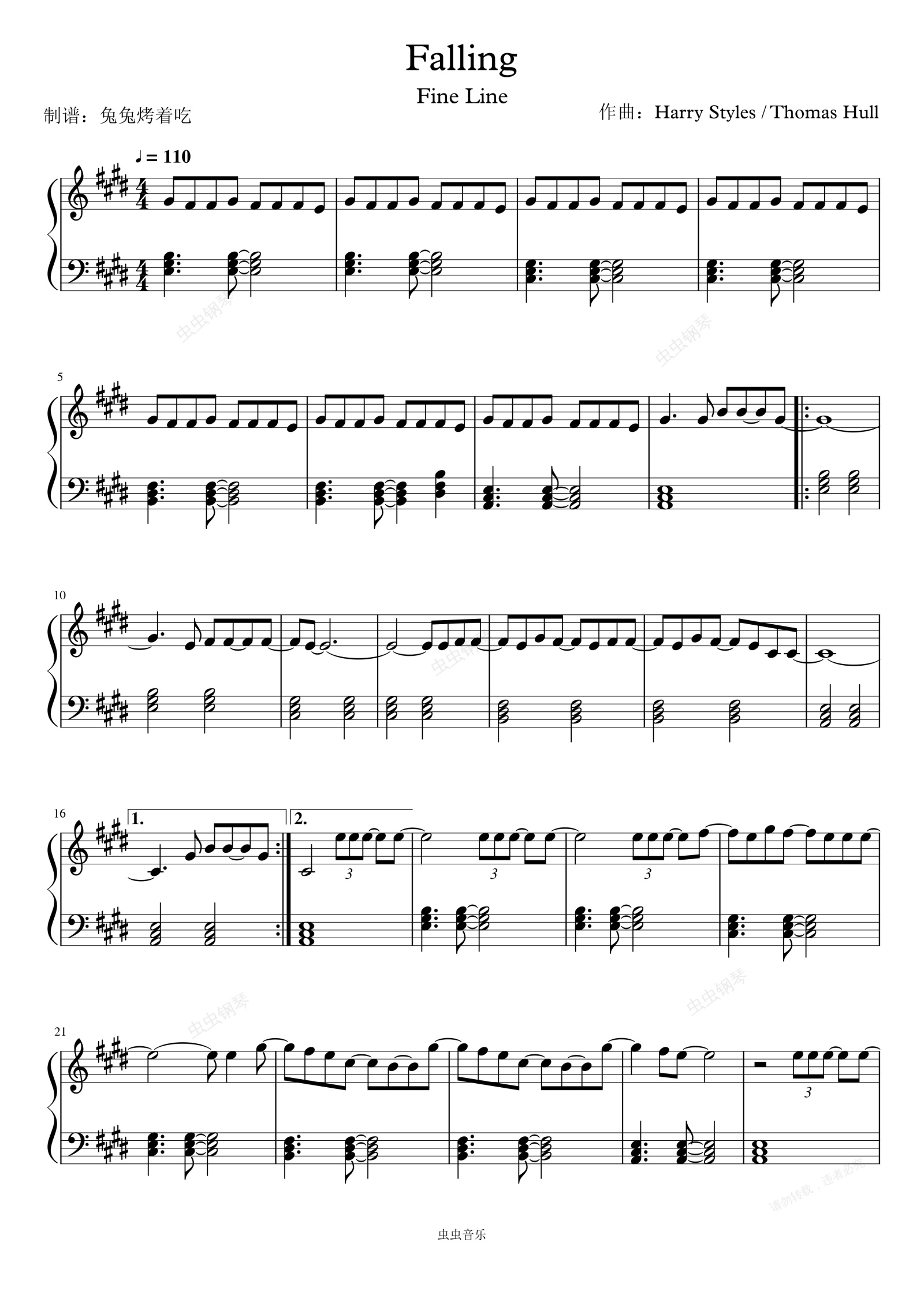 钢琴谱:《Falling》 安静简易 哈里·斯泰尔斯版本