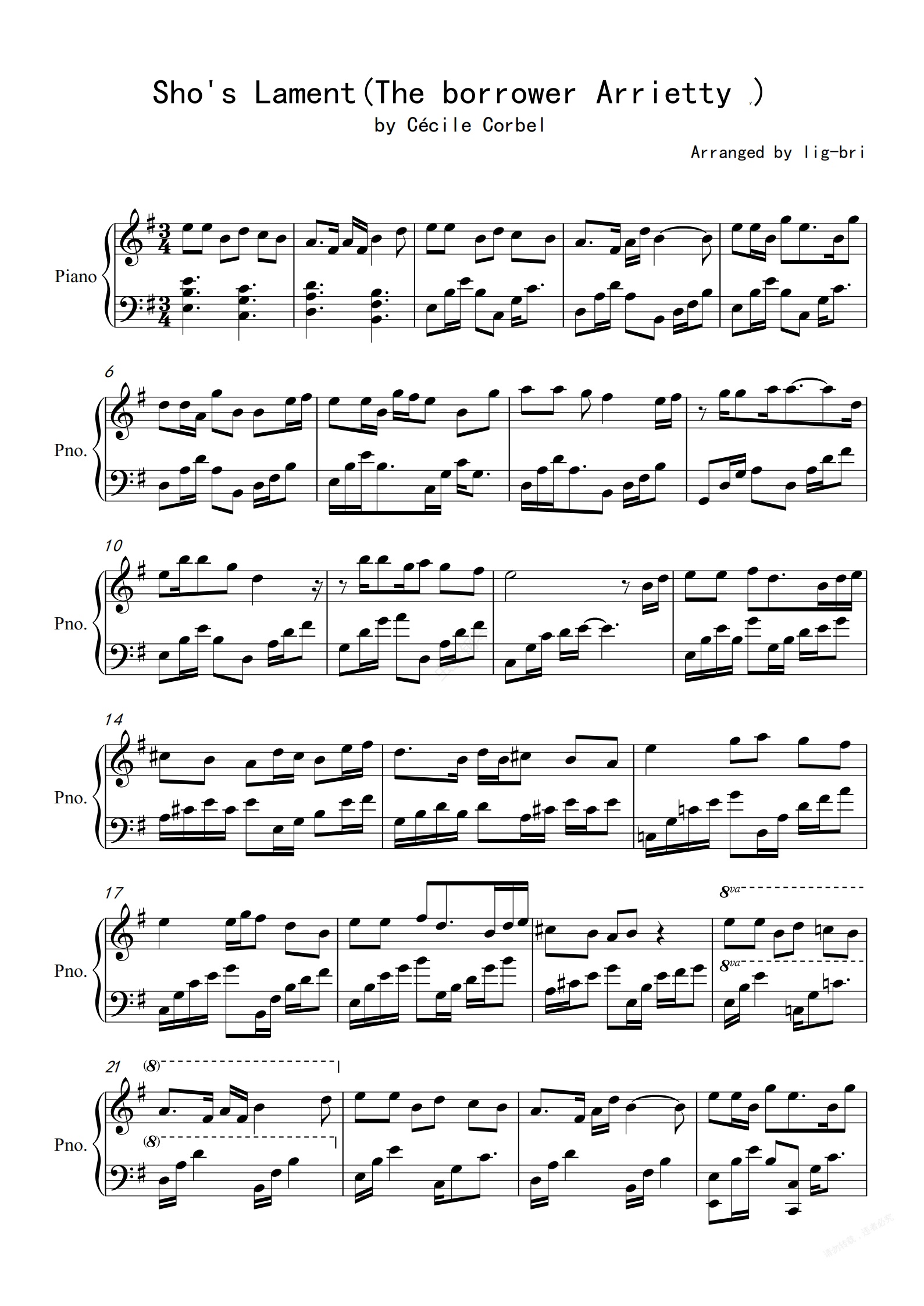 钢琴谱:sho's lament-借东西的小人阿莉埃蒂