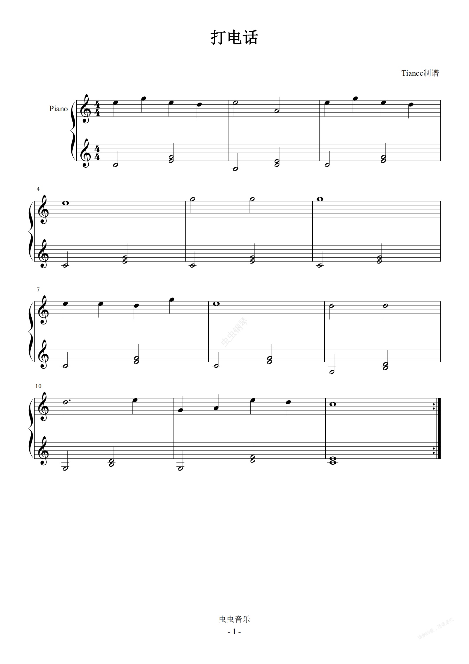 钢琴谱:《打电话》小汤2,3难度,教学专用