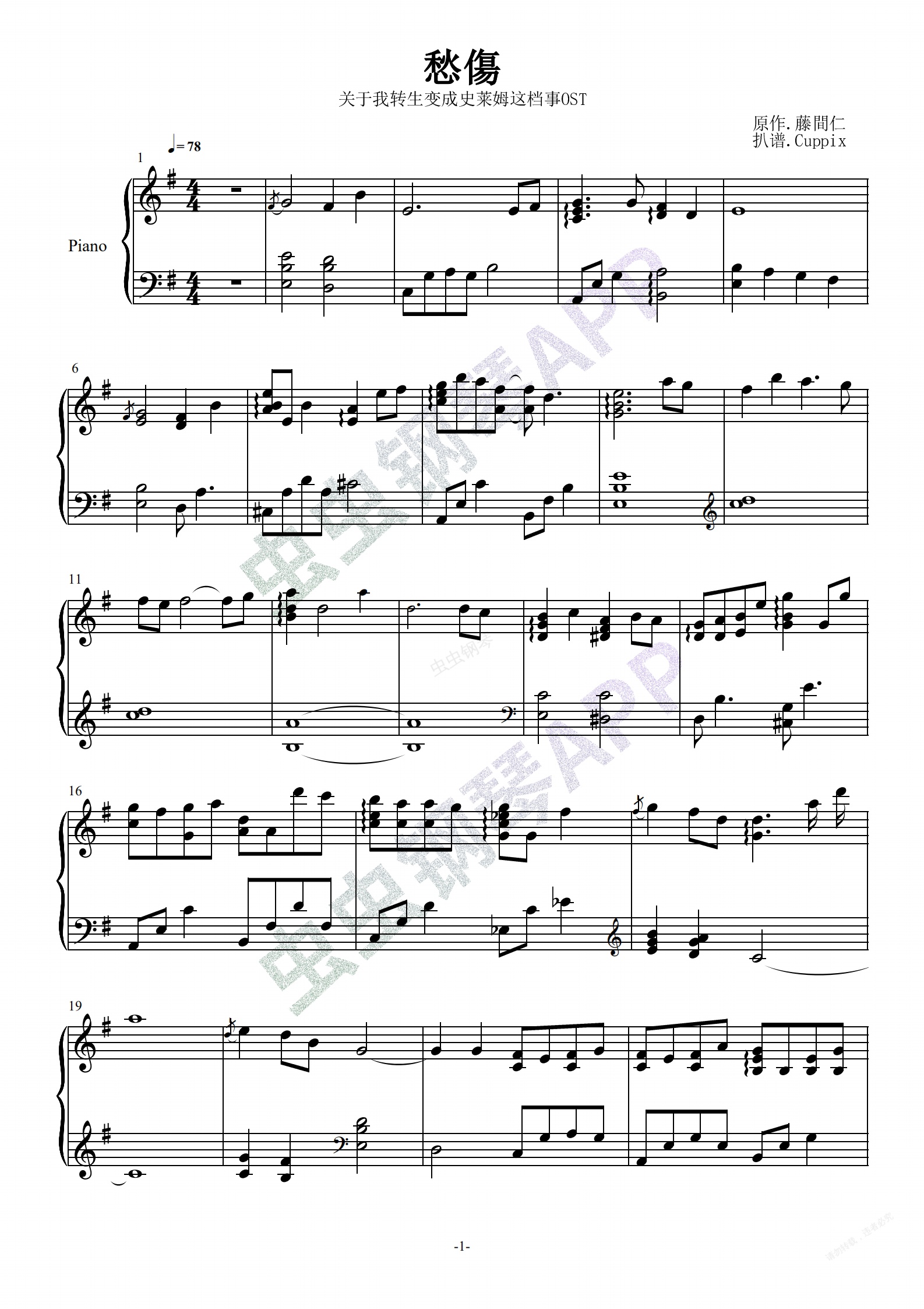 钢琴谱:《愁傷》关于我转生变成史莱姆这档事OST(藤間仁,愁伤)